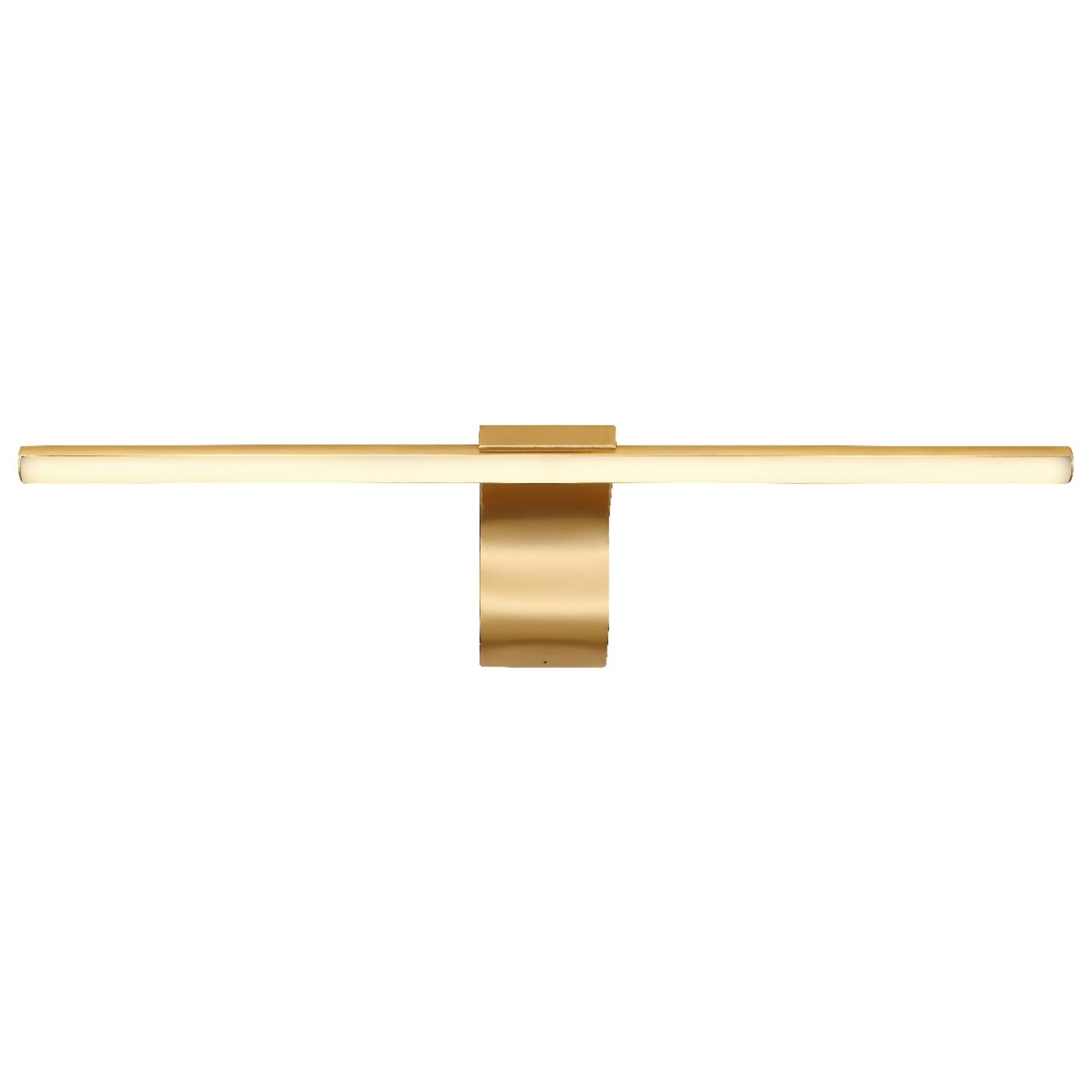 Ova moderna zidna lampa je idealna za bilo koju od vaših soba. LED panel dugačak 61 cm prodire iz metalnog zidnog nosača zlatne boje sa prepustom od 15 cm, koji emituje neutralno svetlo od 4000 Kelvina. IP44 stepen zaštite se koristi za zaštitu od prskanja vode.