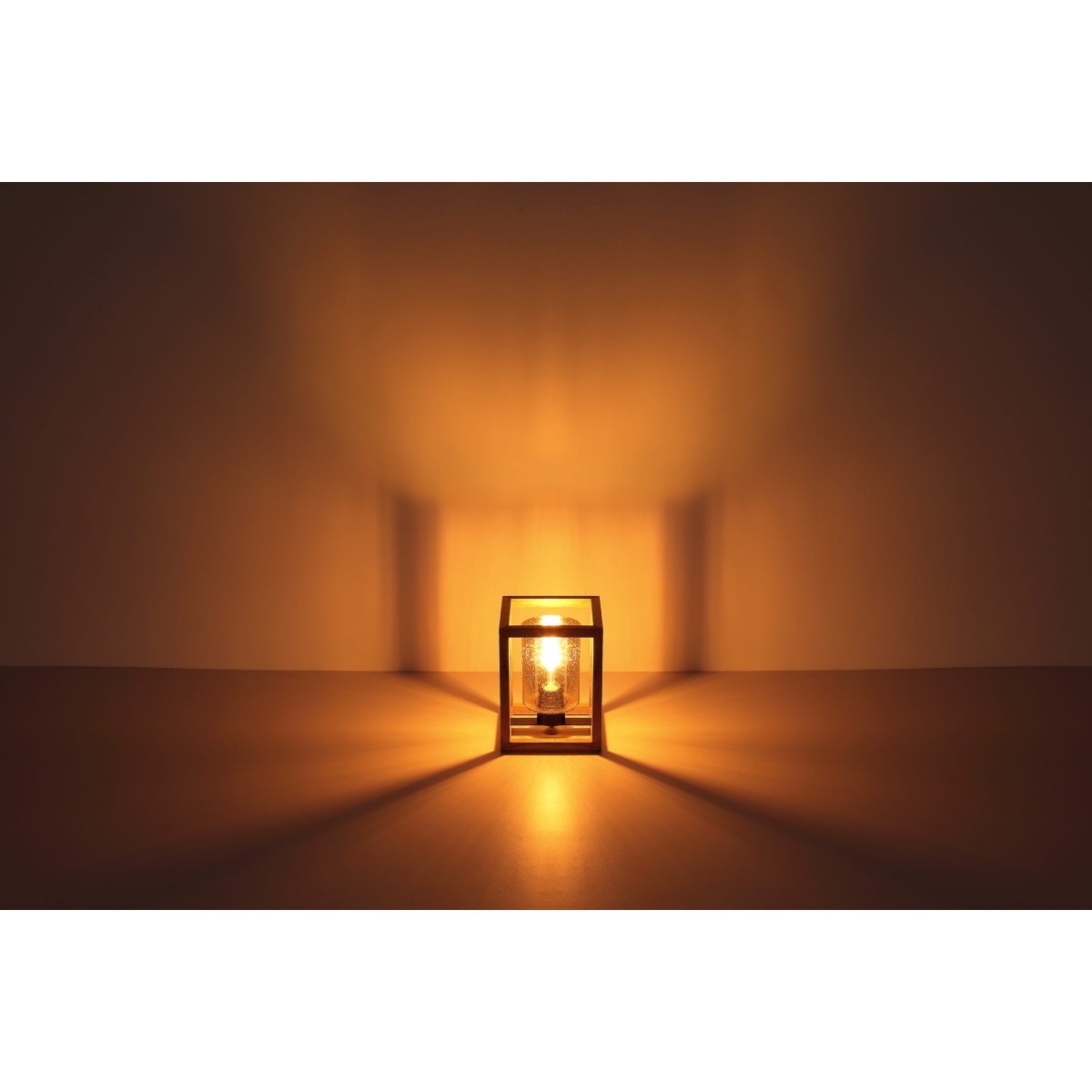 Ova zidna lampa iz serije PETTEY (17×19,5 cm) je divna za vaš enterijer. Zidna lampa dužine 22 cm sastoji se od tamno braon MDF rama, koji je obezbeđen staklom u boji dima iznunutra i fiksiran za mat crnu metalnu ploču. Može biti opremljena E27 sijalicom po vašem izboru, što vam pruža mogućnost da pojedinačno odredite boju svetla i jačinu. Sa drugim modelima iste serije možete da stvorite udoban ambijent u svom domu.