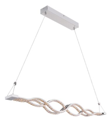 Visilica PILLA sija svojim svetlucavim izgledom. Ova hromirana visilica očarava providnim staklenim kristalima. Svetlost ove unutrašnje lampe sa mogućnošću zatamnjivanja posebno lepo sija kroz kristale. Boja se može promeniti i fiksirati pomoću daljinskog upravljača. Ova 140 cm dugačka visilica sa tri horizontalno zakrivljene grane pruža, zahvaljujući LED sijalici od 30 vati, do 2345 lumena jako svetlo sa prijatnom toplom belom bojom od 3000 Kelvina do hladno bele od 6000 Kelvina. Pored toga, ovo unutrašnje svetlo ima funkciju memorije.
