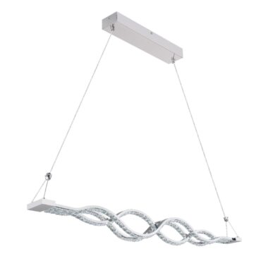Viseća lampa pillA blista svojim blistavim izgledom. Ova hromirana viseća lampa očarava providnim staklenim kristalima. Svetlost ove unutrašnje lampe sa mogućnošću prigušivanja posebno lepo sija kroz kristale. Boja se može menjati i fiksirati pomoću daljinskog upravljača. Ova lepotica koja viri 140 cm u prostoriju sa tri horizontalno zakrivljene šipke pruža do 2345 lumena jake svetlosti sa prijatnom toplo belom bojom svetlosti od toplo bele 3000 Kelvina do hladno bele 6000 Kelvina zahvaljujući LED sijalici od 30 vati. Pored toga, ova unutrašnja lampa ima funkciju memorije.