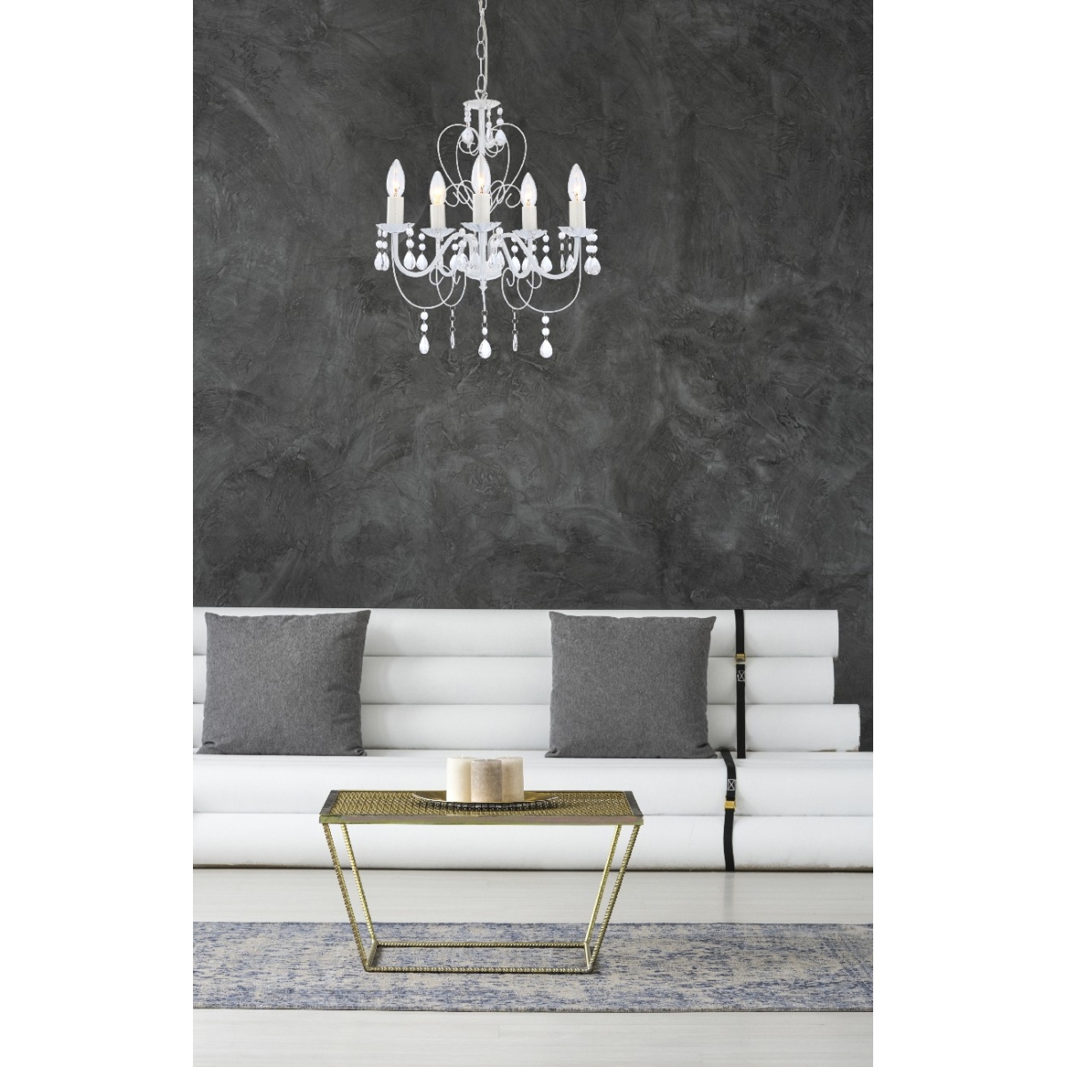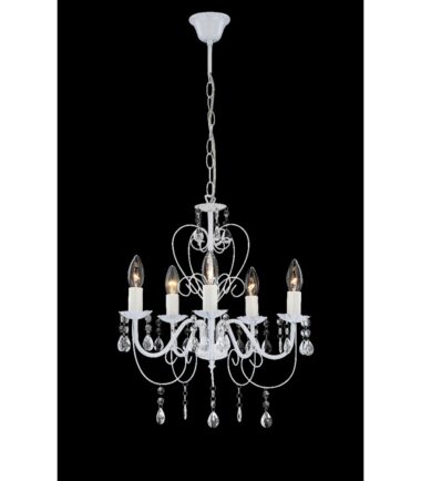 Ovaj tradicionalni luster, iz serije Pinja, karakteriše se svojim vintage dizajnom, kao i visokokvalitetnom izradom. U proizvodnji ove viseće lampe odabran je beli metal i providni akrilni kristali, što ovoj lampi daje ekstravagantan izgled. Pet E14 grla postavljenih na zakrivljenim krakovima pruža vam mogućnost korišćenja bilo kog izvora svetlosti (maks. 40W). Ovaj klasični luster se može veoma dobro kombinovati sa drugim proizvodima iz iste serije.
