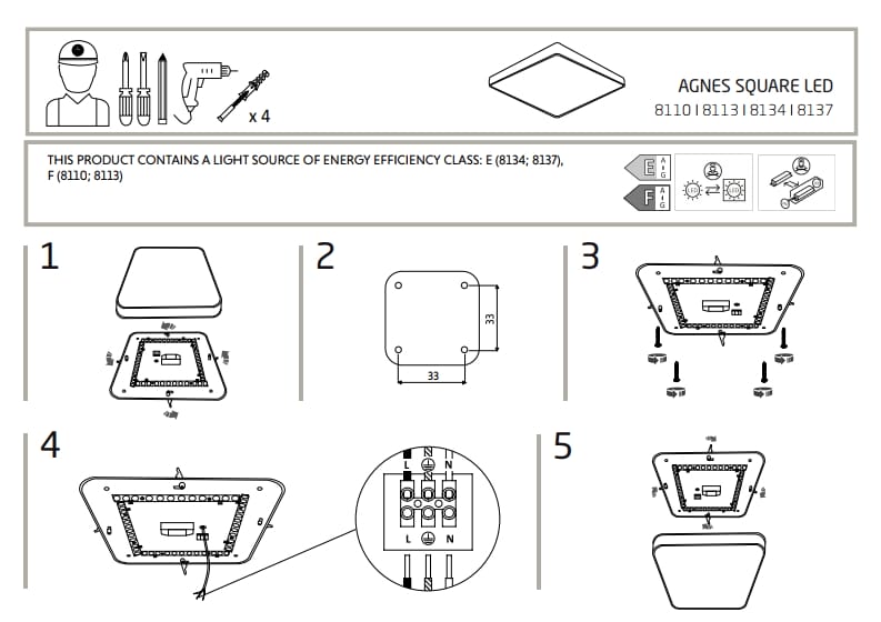 Почетна›Nowodvorski›Unutrašnja rasveta›Plafonjera AGNES SQUARE LED WHITE 32W 3000K IP44 – Nowodvorski 8113