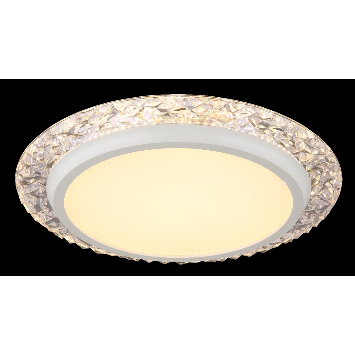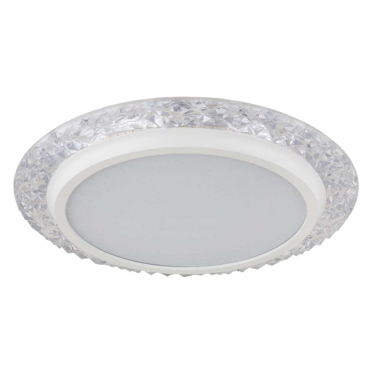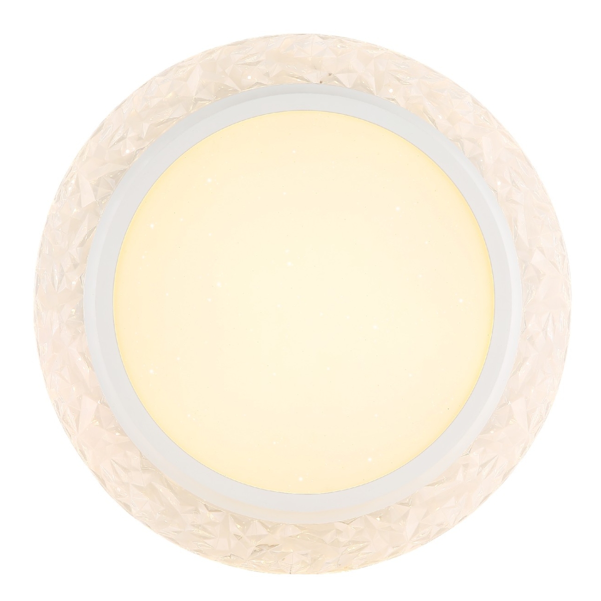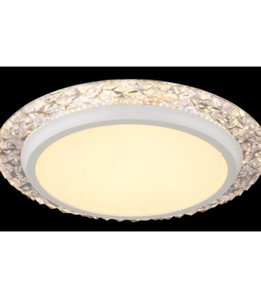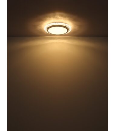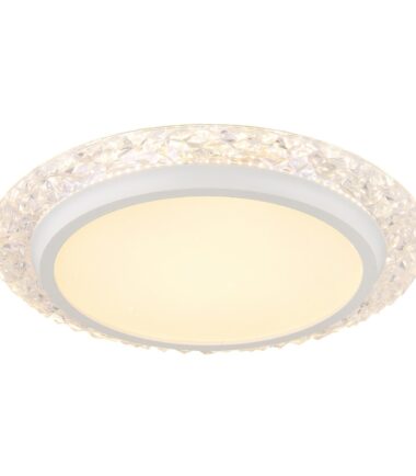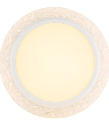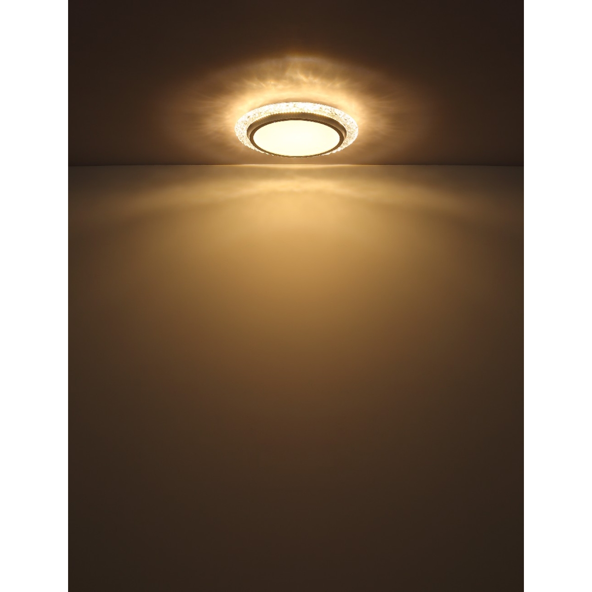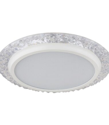 Okrugla plafonska lampa je moderan dodatak svakoj prostoriji. Sa kućištem od belog metala i abažurom od providnih plastičnih kristala i opalnih svetlucavih elemenata, ova lampa odiše elegancijom. Prečnik od 400 mm i snaga od 22W obezbeđuju ujednačeno osvetljenje sa izlaznom snagom od 1460 lumena i prijatnom bojom svetla od 3000K. Savaršena je za hodnik, dnevni boravak ili spavaću sobu. Njen moderan dizajn i visokokvalitetna izrada čine je privlačnom za oko u svakoj prostoriji. Unesite moderan ambijent i prijatno svetlo u svoj dom sa ovom plafonskom lampom.