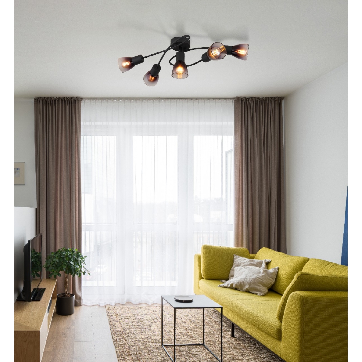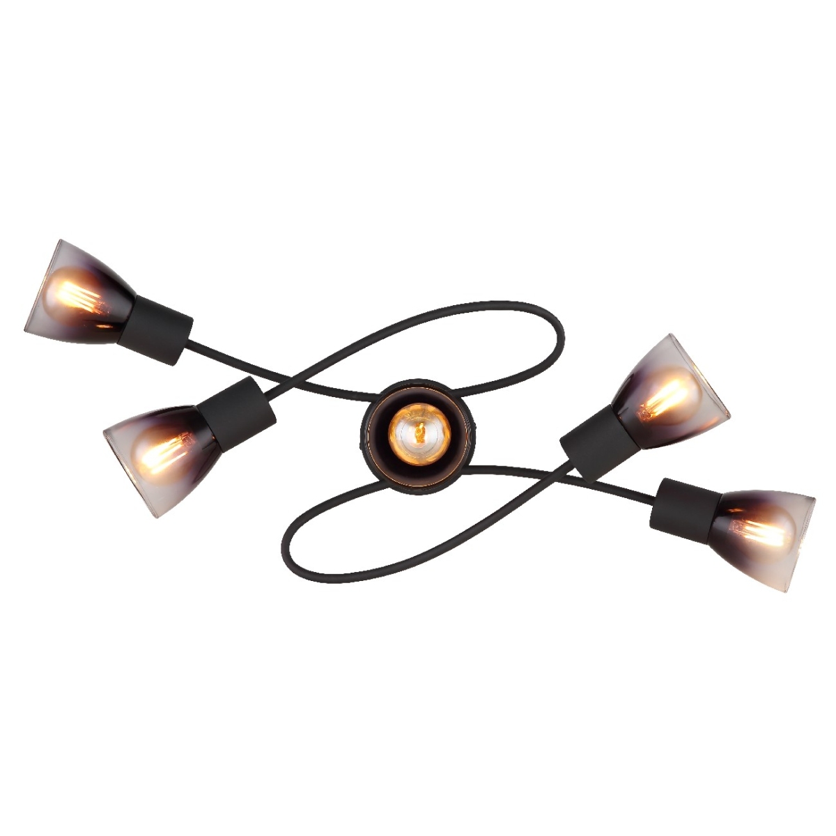 Ovalna plafonska lampa sa dva zakrivljena kraka i ravnim delom u sredini je moderan detalj za vaš dom. Telo je napravljeno od mat crnog metala, a abažur od providnog stakla u boji dima, što lampi daje elegantan izgled. Sa ukupno pet E14 grla, lampa nudi dovoljnu osvetljenost i fleksibilnost za različite prostorije. Sa dužinom od 580 mm i širinom od 240 mm, ova lampa obzbeđuje ujednačeno osvetljenje. Snaga od 25W obezbeđuje prijatno osvetljenje. Uz ostale porizvode ove serije možete upotpuniti sliku u vašem domu.
