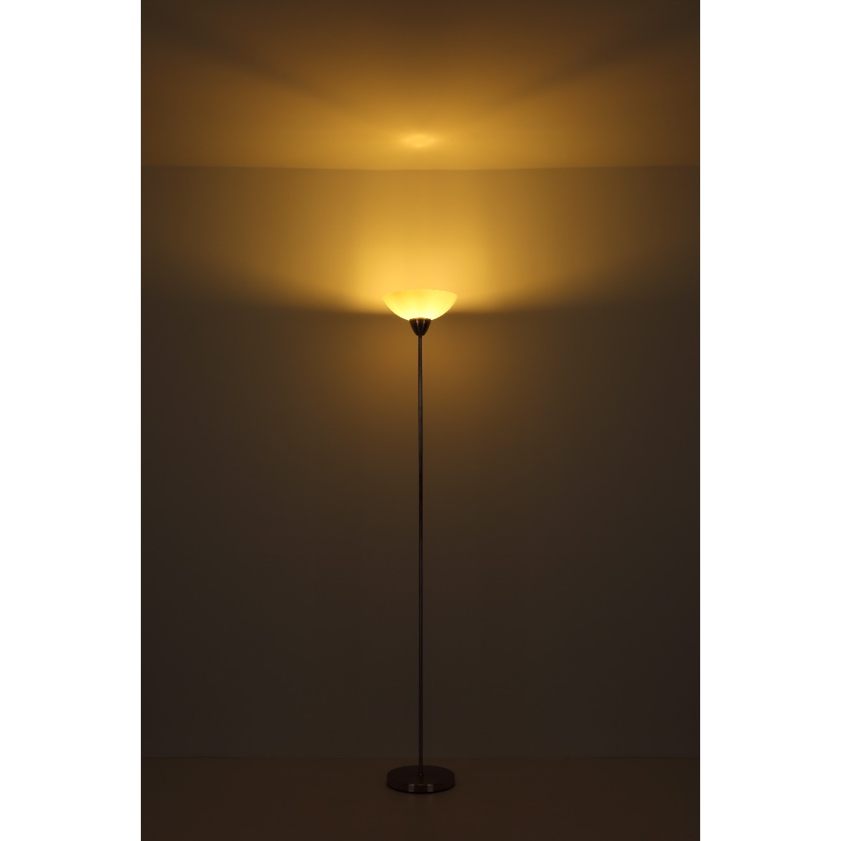 Podna lampa serije LIMA je elegantno rešenje za osvetljenje vašeg doma. Mat niklovano metalno telo u kombinaciji sa opalnim staklom daje lampi modran izgled. Sa prečnikom od 280 mm, ova podna lampa je kompaktna i lako se uklapa u različite koncepte prostorija. Grlo E27 vam nudi mogućnost odabira sijalice maksimalne jačine do 60W. Na kablu se nalazi praktičan prekidač za paljenje i gašenje lampe.