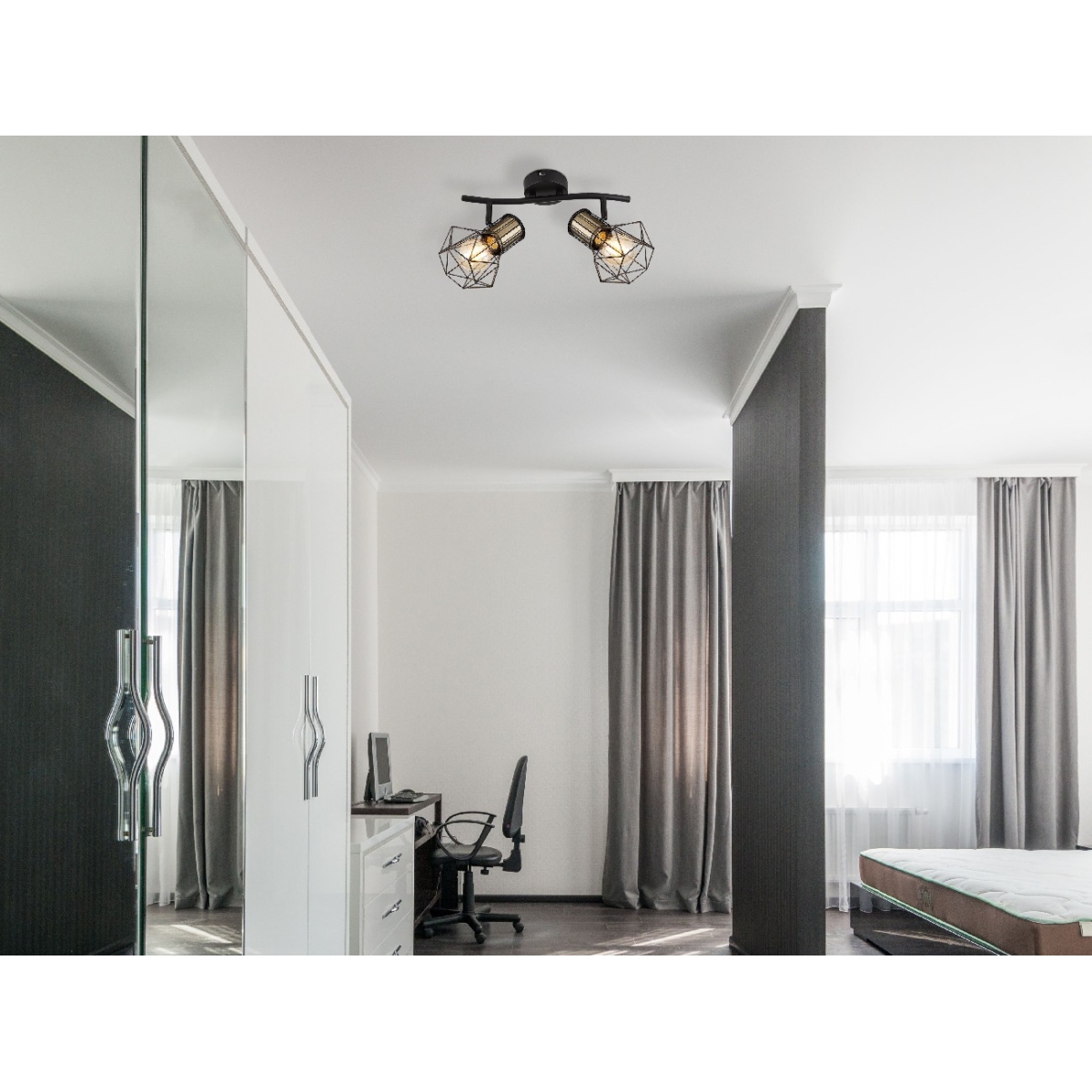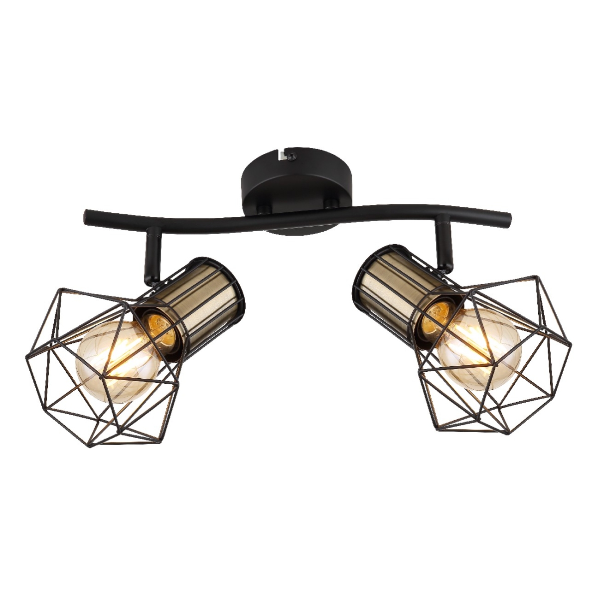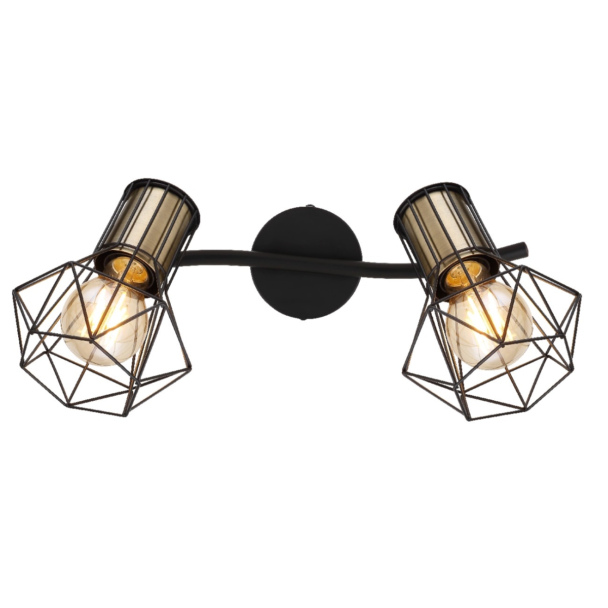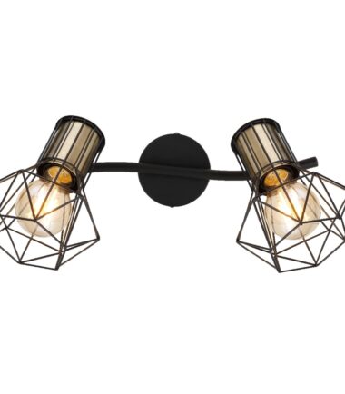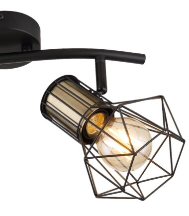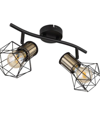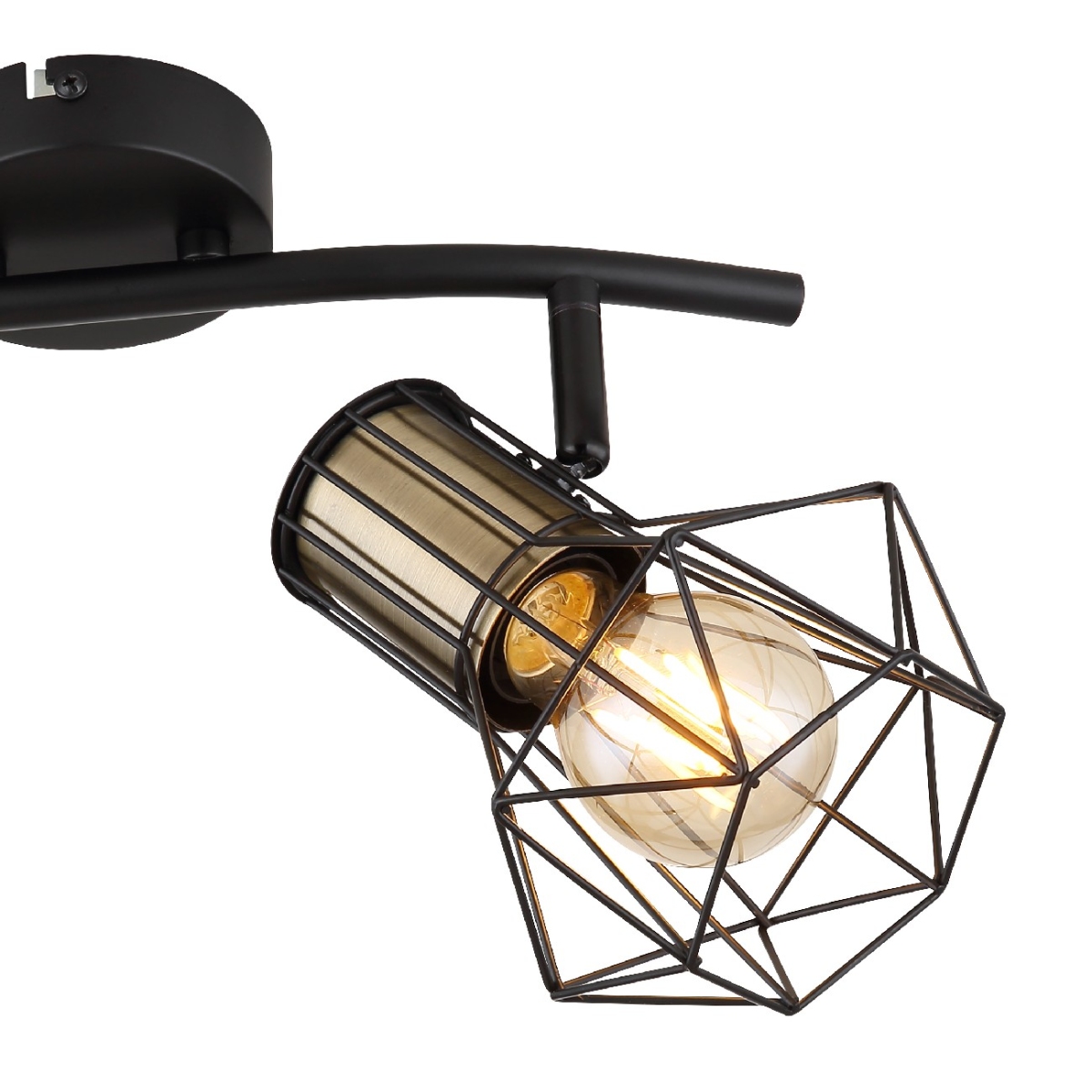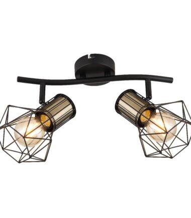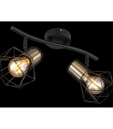 Ovaj prelepi reflektor inspiriše sjajnim dizajnom. Dva grla E27 od starog mesinga nalaze se na 34cm dugačkoj zakrivljenoj crnoj šipki, koja se montira na plafon pomoću okrugle baze. Na E27 grla se nastavljaju oblikovani abažuri u obliku metalne mreže. Izbor sijalice je slobodan do maksimalne snage od 40 vati.