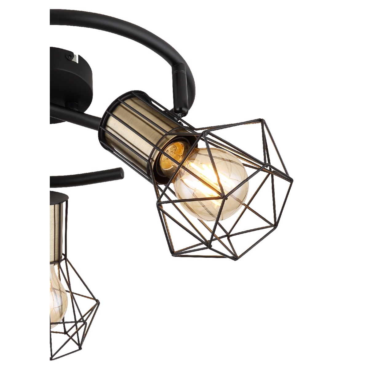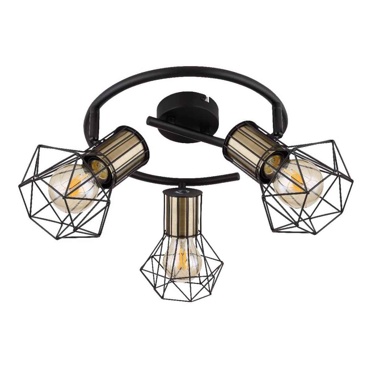 Ovaj prelepi reflektor inspiriše sjajnim dizajnom. Tri E27 grla od starog mesinga nalaze se na kružnoj crnoj šipki (Ø28,5cm) koja se montira na plafon pomoću okrugle baze. Na E27 grlima nastavljaju se oblikovani abažuri u obliku metalne mreže. Izbor sijalice je slobodan do maksimalne snage od 40 vati.