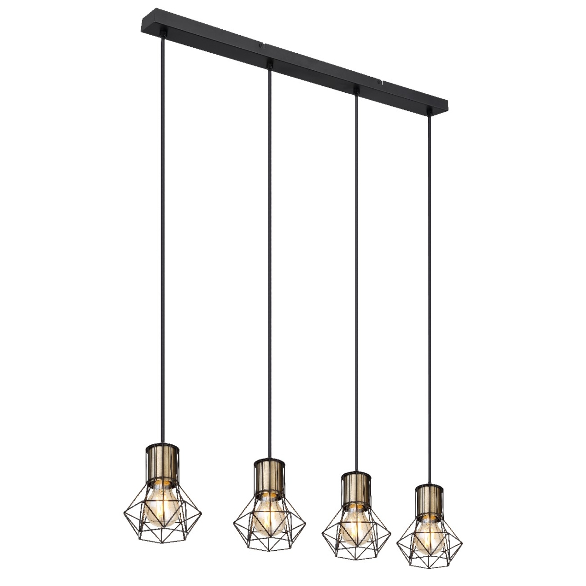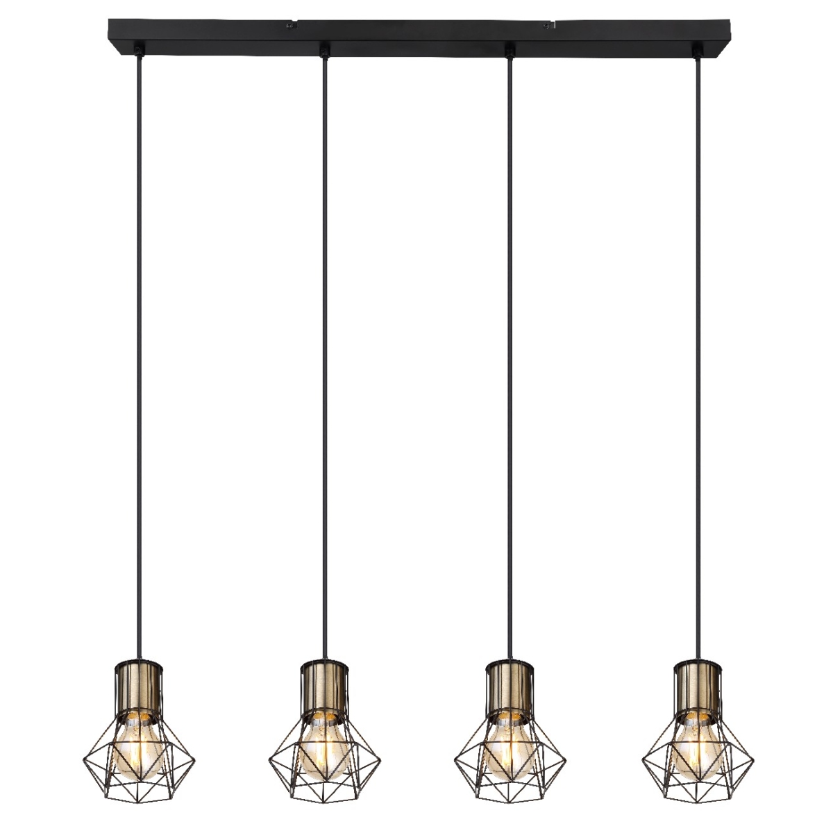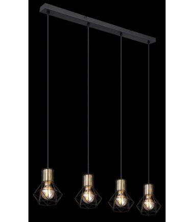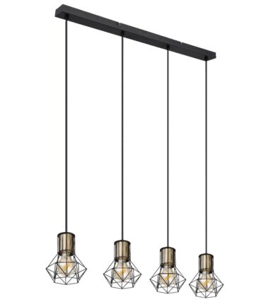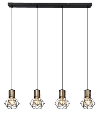 Ova ukrasna visilica impresionira svojim prelepim izgledom. Četiri E27 grla sa prelepim metalnim mrežastim abažurima vise na crnom kablu 1,2m sa pravougaone osnove dužine 72cm od plafona.