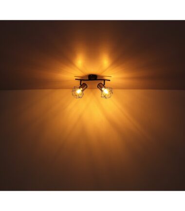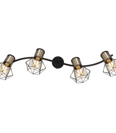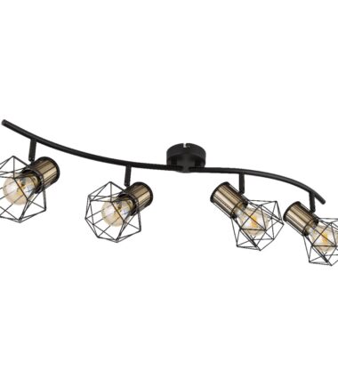 Plafonska lampa-spot iz serije PPRISKA ubeđuje svojim elegantnim dizajnom. Četiri pokretna crna metalna mrežasta abažura u obliku dijamanta prikačena na dve grane sa ukrasima od starog mesinga trebalo bi da privuku svačiju pažnju. Spotovi su opremljeni E27 grlom, koje vam omogućava da sami izaberete pravi izvor svetlosti (max. 40W) i na taj način odredite boju svetla i intenzitet svetlosti. Zbog njihove uštede energije i dugovečnosti preporučujemo LED sijalice. Uz dodatne reflektore iz ove serije možete upotpuniti sliku u svoja četiri zida.
