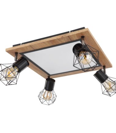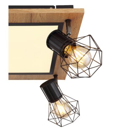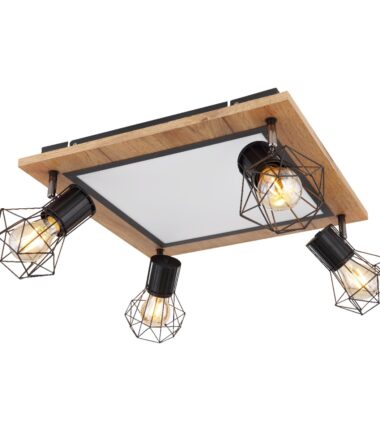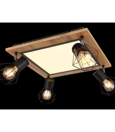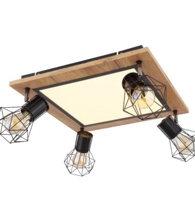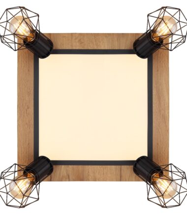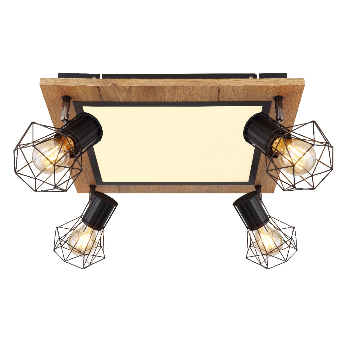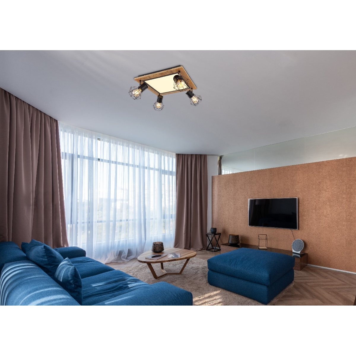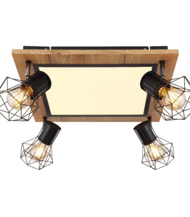Ova četvrtasta plafonska lampa impresionira svojim sjajnim izgledom. LED panel se nalazi na sredini drvene ploče (45c45cm) sa četiri GU10 grla i oblikovanom metalnim mrežastim abažurom. Panel obezbeđuje 3000 Kelvina prijatno toplo belo svetlo i ima 24W. Funkcija memorije vam omogućava da zadržite poslednje korišćene postavke.