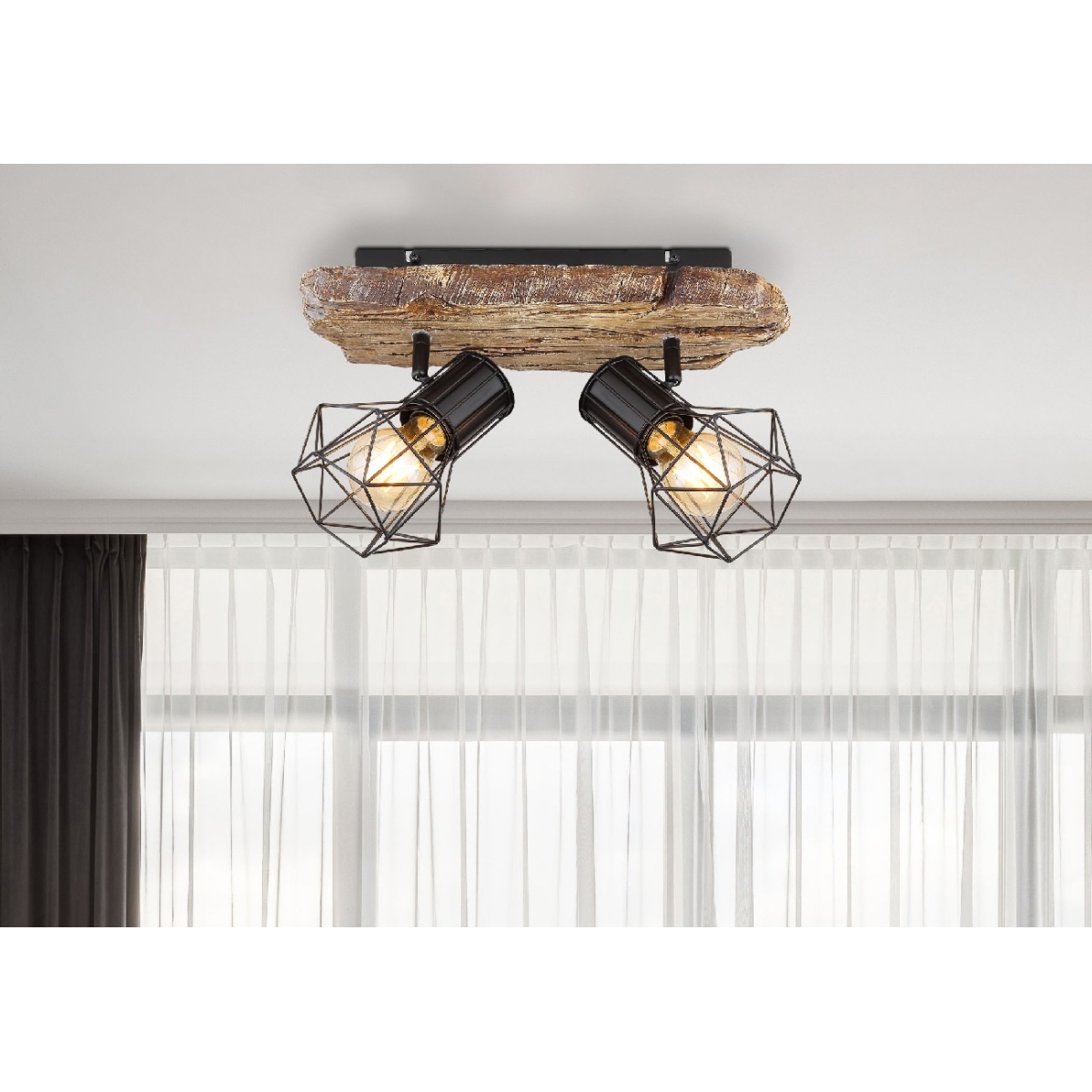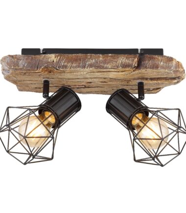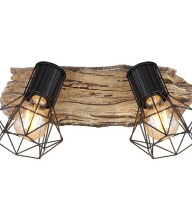 Ova vanvremenska plafonska lampa PRISKA serije inspiriše svojim prelepim drvenim izgledom u kombinaciji sa modernim dizajnom. Sastoji se od dva crna metalna mrežasta abažura, od kojih svaki ima E27 grlo, visi 23cm sa plafona i pričvršćena je za nosač (38,5x12cm) nalik drvetu. Uz pomoć grla E27 imate mogućnost korišćenja sijalice, do maksimalne snage od 60 vati. Drugi modeli iz ove serije vam omogućavaju da još više ulepšate svoj dnevni boravak.