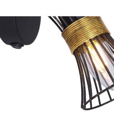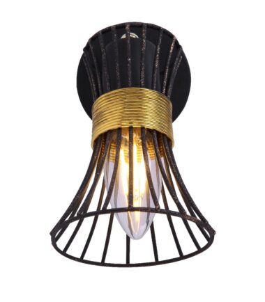 Zidna lampa serije PURRA ističe se kombinacijom crnog i zlatno obojenog metala. Elegantni reflektor okružen je crnim šipkama sa vezanim zlatnim koncem. Zbog E14 grla možete slobodno odabrati sijalicu (max. 40Watt). Zbog njihove dugovečnosti preporučujemo LED sijalice. Uz ostale modele ove serije možete dodatno ulepšati životni prostor.