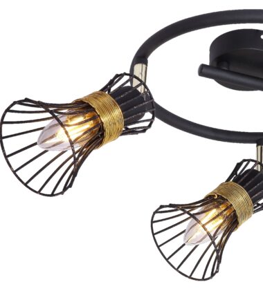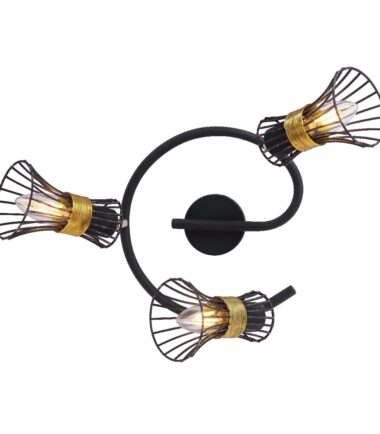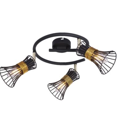 Plafonska lampa (Ø 250mm) serije proizvoda PURRA ističe se se kombinacijom metala crne i zlatne boje. Tri reflektora okružena su crnim šipkama sa vezanim zlatnim koncem. Fleksibilni reflektori su pričvršćeni za stub u obliku slova E i cela soba može biti osvetljena na fokusiran način. Zbog E14 grla možete slobodno odabrati sijalicu (max. 40W). Zbog njihove dugovečnosti preporučujemo LED sijalice. Uz ostale modele ove serije možete dodatno ulepšati životni prostor.