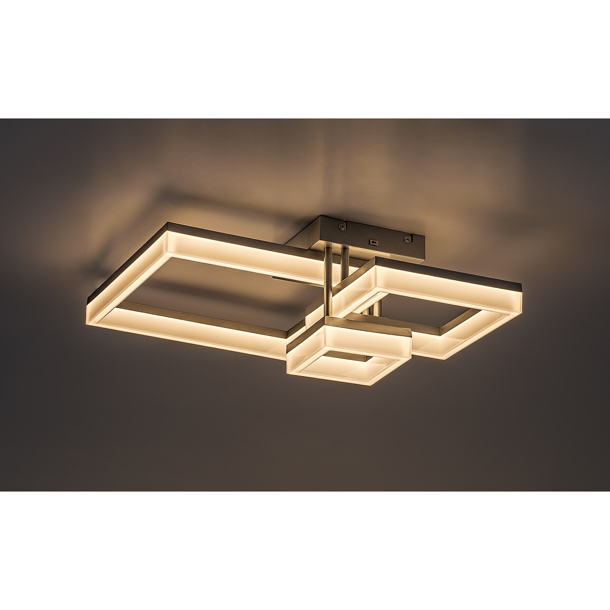 Rabalux Amilia plafonska lampa se preporučuje onima koji smatraju da su kreativan dizajn i pametne funkcije podjednako važni. Ova LED lampa ima moderan stil, postolje u hromiranoj boji i beli plastični senzor. Spektakularni model se sastoji od tri kvadratna elementa različitih veličina i može se pričvrstiti za plafon pomoću kvadratne dekorativne baze u hromiranoj boji. Lampa ima ugrađeni LED izvor svetlosti sa tri postavke temperature boje putem DIP prekidača. Plafonska lampa ima veliki svetlosni intenzitet, što je čini savršenom za veće prostorije. Idealna je za dnevnu sobu, trpezariju ili spavaću sobu. Zahvaljujući integrisanoj LED tehnologiji, ovaj model se odlikuje energetski efikasnim radom i dugim vekom trajanja.