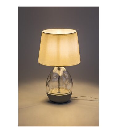 Rabalux Apolonia stona lampa preporučuje se onima koji traže posebnu, upadljivu dopunsku lampu. Ova dizajnerska lampa ima postolje izrađeno od providnog stakla i belog keramike, sa belim tekstilnim abažurom. Abažur se blago širi nadole, a njegova svetla boja filtrira, ali ne previše prigušuje svetlost koju emituje sijalica. Stona lampa je savršen izbor za dnevnu sobu ili spavaću sobu, gde se može koristiti i kao dekorativni element. U zavisnosti od vašeg ukusa, možete izabrati sijalicu koja emituje toplo ili prirodno belo svetlo. Može se upravljati kablovskim prekidačem i koristiti sa jednim izvorom svetlosti snage do 40 W. Tip grla je E27. Noćna lampa se isporučuje bez izvora svetlosti.