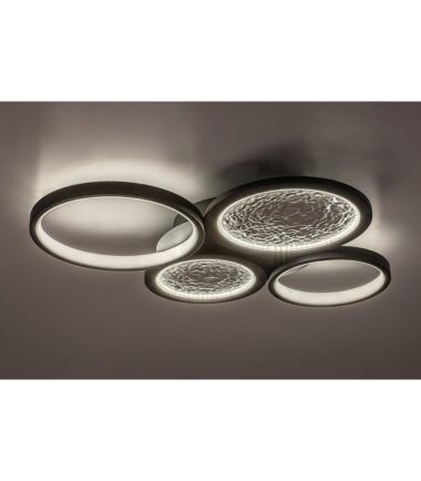 Rabalux Aranis plafonska lampa je idealan izbor za one koji traže spektakularnu plafonsku lampu sa širokom funkcionalnošću. Ovaj model se sastoji od okruglih oblika različitih veličina, od kojih dva imaju zanimljivu teksturu unutar njih koja podseća na površinu meseca. Postolje je izrađeno od metala u crnoj boji i dopunjeno belim plastičnim senzorom. Dekorativna baza koja se koristi za pričvršćivanje lampe na plafon ima oblik diska. Ima ugrađeni LED izvor svetlosti čija se temperatura boje može podešavati pomoću daljinskog upravljača ili zidnog prekidača. Osvetljenost se takođe može prilagoditi, a pored toga, dostupne su funkcije memorije, tajmera i noćnog svetla – sve se može upravljati daljinskim upravljačem. Lampa se prvenstveno preporučuje za dnevnu sobu, trpezariju ili spavaću sobu.