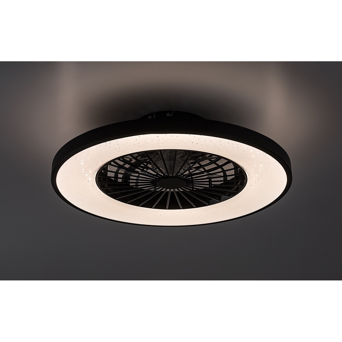 Plafonska lampa sa ventilatorom Rabalux Dalfon 2 je idealan izbor za one koji traže svestrani model 2-u-1. Lampa ima ugrađen LED izvor svetlosti visokih performansi, a pored ventilatora, nudi i druge pametne funkcije: osvetljenost i temperaturu boje možete podešavati daljinskim upravljačem, a lampa takođe ima memoriju, tajmer i funkciju noćnog svetla. Temperatura boje može se podešavati i zidnim prekidačem. Kućište je izrađeno od metala i plastike u crnoj boji. Abažur je od bele plastike sa elegantnim efektom zvezdanog neba na površini. Brzina ventilatora je podesiva, a snaga je dovoljna za prostorije do 33 m². Plafonska lampa sa ventilatorom karakteriše energetski efikasan rad i dug vek trajanja. Preporučuje se pre svega za moderne dnevne sobe, spavaće sobe i radne prostore.