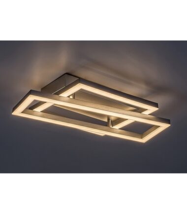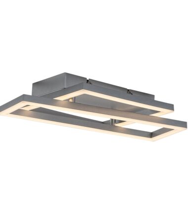 Rabalux Ellinor ceiling light is recommended to those who are looking for a modern lamp with a long life-span for the larger rooms in their home. This model is a great combination of creative design and restrained look. The LED light is made of metal in chrome colour and is complemented by a white plastic lampshade. It is made up of square shapes: a rectangular decorative base with a square and a rectangular lamp element rotated in relation to it. The ceiling light has a built-in LED light source that emits a warm white light. This model is the ideal choice for the living room, dining room or bedroom. Its brightness also makes it suitable for illuminating larger rooms. Thanks to the integrated LED technology, the lamp is characterised by energy-efficient operation and a long life-span.