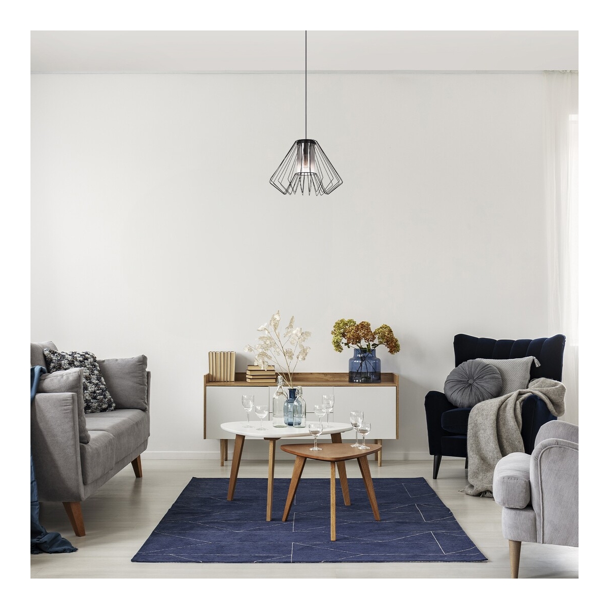 Rabalux Emerencia viseća lampa se preporučuje ljubiteljima industrijskog stila. Ovaj model sa posebnim dizajnom izrađen je od crnog metala. Unutra se nalazi cilindrična dimljena staklena senka, koja je okružena spoljnim senkom u obliku slova A sa rešetkastim dizajnom. Viseća lampa se može pričvrstiti za plafon pomoću male, okrugle dekorativne baze. Idealna je za dnevnu sobu, kuhinju, trpezariju ili spavaću sobu. Može se koristiti sa jednom sijalicom snage do 40 W. Tip grla je E27. Pošto je izvor svetlosti jasno vidljiv kroz senku, preporučuje se korišćenje ove lampe sa estetski privlačnom sijalicom neobičnog oblika. U zavisnosti od vašeg ukusa i prostorije u kojoj želite da instalirate lampu, možete odabrati sijalicu koja emituje toplo ili prirodno belo svetlo. Viseća lampa se isporučuje bez izvora svetlosti.