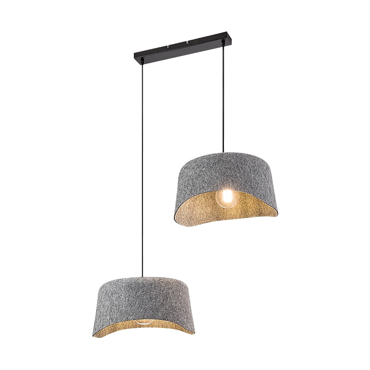 Rabalux Farelia 2-sijalice viseća lampa je preporučena onima koji vole modele koji su jedinstveni kako u obliku, tako i u materijalu. Viseća lampa sa dve lampe je izrađena od crnog metala sa sivim filcanim senkama i može se pričvrstiti za plafon pomoću izduženog kvadratnog dekorativnog postolja. Materijal senke je napravljen od ekološki prihvatljivog, recikliranog materijala. Dve lampe vise na različitim visinama, što, zajedno sa talasastim linijama senki, dodaje igrivost izgledu lampe, dok materijal senki unosi toplinu u njen izgled. Ova 2-sijalica viseća lampa je idealna za moderne dnevne sobe, spavaće sobe ili radne sobe. Može se koristiti sa dva izvora svetlosti, svaki snage do 10 W. Tip grla je E27. Lampa se isporučuje bez izvora svetlosti.