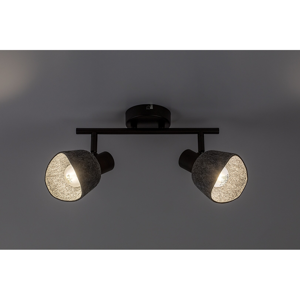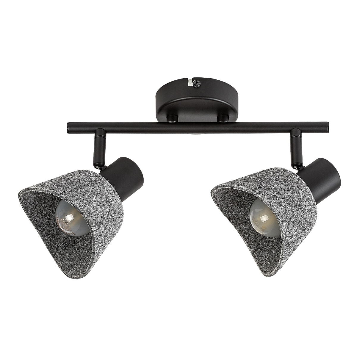 Rabalux Farelia 2-sijalice plafonska spot lampa se preporučuje onima koji vole lampe sa jedinstvenim izgledom koje doprinose prijatnoj atmosferi. Ovaj model je izrađen od metala u crnoj boji sa sivim filcanim senkama. Materijal od kojeg je senka napravljena je ekološki prihvatljiv, reciklirani materijal. Lampa se može pričvrstiti za plafon pomoću male okrugle dekorativne baze, na koju je pričvršćen cilindrični štap koji drži glave lampe. Zakrivljeni oblik senki u obliku zvona, u kombinaciji sa mekim filcanim materijalom, daje lampi prijatan, srdačan izgled. Idealna je za dnevnu sobu, spavaću sobu ili radnu sobu. Može se koristiti sa dva izvora svetlosti, svaki snage do 10 W. Tip grla je E14. Ova 2-sijalica spot lampa je izrađena sa praktičnim fleksibilnim glavama lampe. Lampa se isporučuje bez izvora svetlosti.