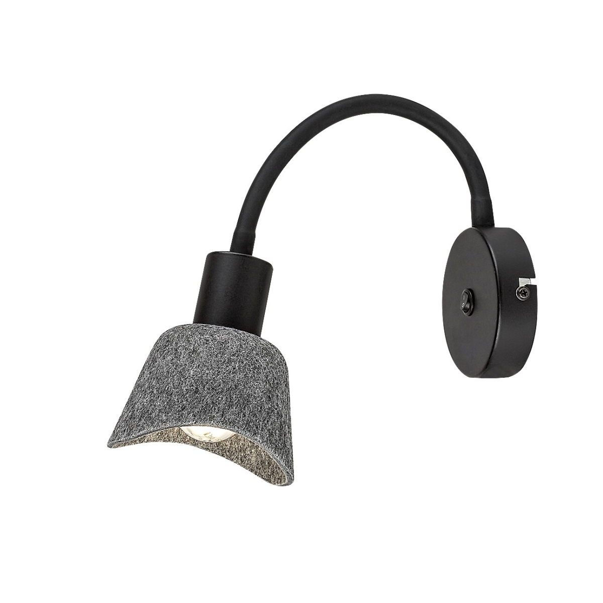 Rabalux Farelia zidna lampa je idealan izbor za onima koji traže model jedinstvenog izgleda koji doprinosi prijatnoj atmosferi. Ova lampa za čitanje je izrađena od metala u crnoj boji sa sivom filcanom senkom. Materijal od kojeg je senka napravljena je ekološki prihvatljiv, reciklirani materijal. Lampa se može pričvrstiti za zid pomoću male okrugle dekorativne baze i upravljati prekidačem na bazi. Dugi, zakrivljeni rukav se uzdiže od dekorativne baze, završavajući u senki u obliku zvona koja je otvorena sa donje strane. Meki filcani materijal senke daje lampi prijatan, srdačan izgled. Ovaj model se preporučuje za dnevnu sobu, spavaću sobu ili radnu sobu. Može se koristiti sa jednom sijalicom snage do 10 W. Tip grla je E14. Zidna lampa se isporučuje bez izvora svetlosti.