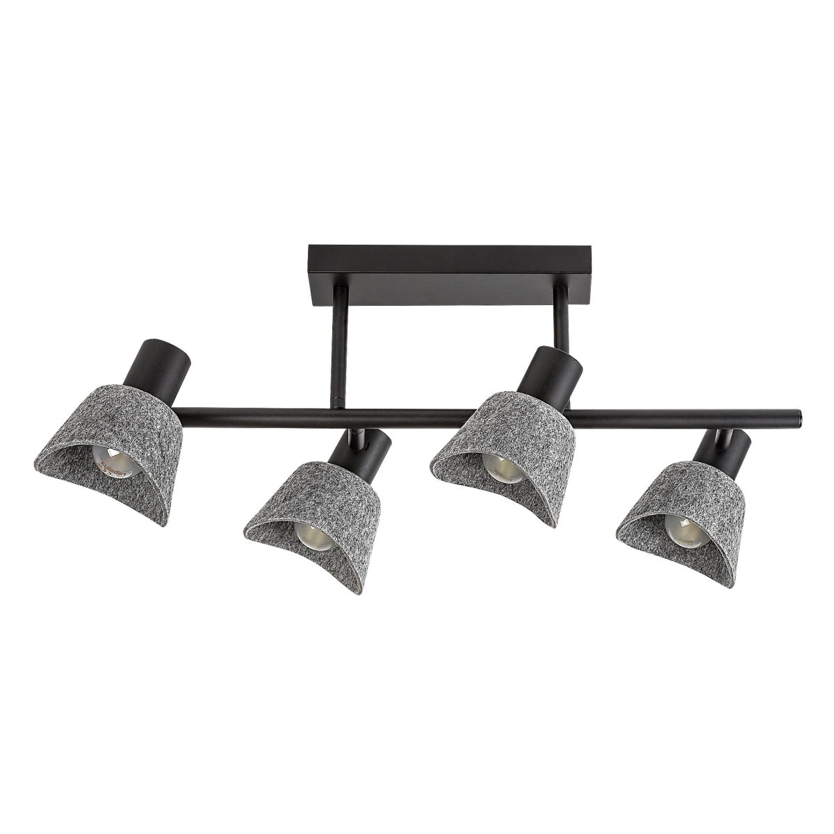 Rabalux Farelia 4-sijalice plafonska lampa se preporučuje onima koji traže lampu jedinstvenog izgleda koja doprinosi prijatnoj atmosferi u svom modernom domu. Ovaj model je izrađen od metala u crnoj boji sa sivim filcanim senkama i može se pričvrstiti za plafon pomoću izduženog kvadratnog dekorativnog postolja. Materijal od kojeg je senka napravljena je ekološki prihvatljiv, reciklirani materijal. Glave lampe su postavljene sa obe strane dugog cilindričnog štapa pričvršćenog za dekorativnu bazu. Zakrivljeni oblik senki u obliku zvona, u kombinaciji sa mekim filcanim materijalom, daje lampi prijatan, srdačan izgled. Idealna je za prostrane dnevne sobe, spavaće sobe ili radne sobe. Može se koristiti sa četiri izvora svetlosti, svaka snage do 10 W. Tip grla je E14. Lampa se isporučuje bez izvora svetlosti.