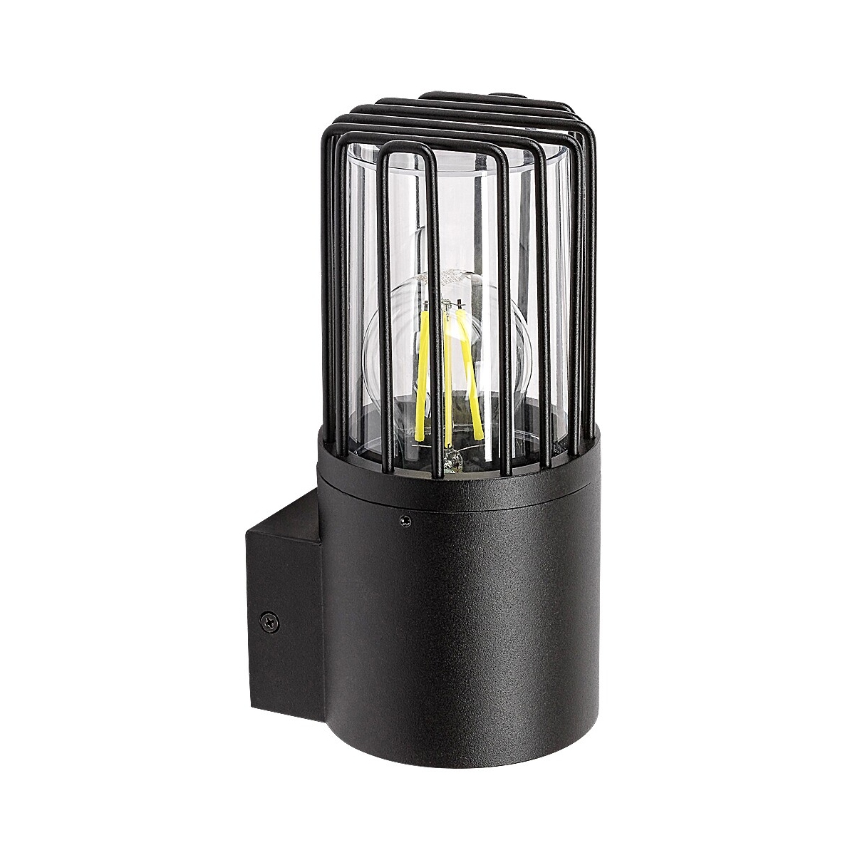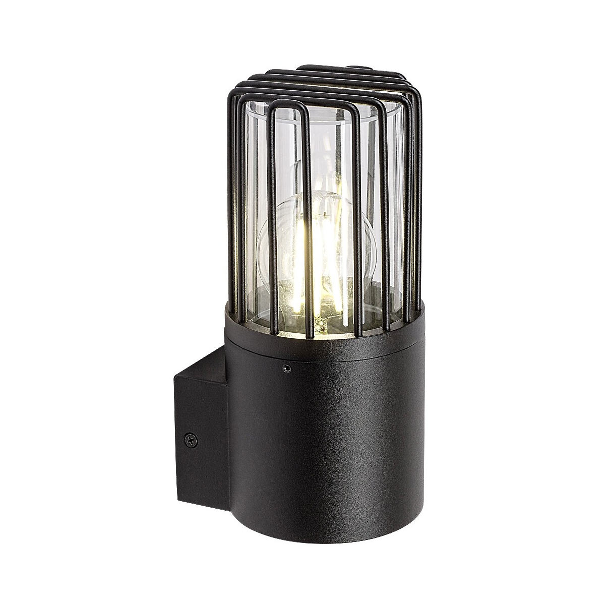 Moderna spoljna zidna lampa Haren prvenstveno se preporučuje za terasu ili spoljašnji zid kuće. Ovaj izdržljivi model crne boje napravljen je od aluminijuma i dopunjen je cilindričnim providnim unutrašnjim abažurom i spoljnim abažurom sa rešetkama. Može se pričvrstiti na zid uz pomoć male kvadratne dekorativne osnove. Haren se može koristiti sa jednom sijalicom snage do 60 V. Tip grla je E27. Pošto providni abažur omogućava da jasno vidite izvor svetlosti, izgled ovog modela možete učiniti zanimljivijim koristeći ga sa estetskom sijalicom nekonvencionalnog oblika. Dimenzije ovog spoljnog svetla su sledeće: širina 210 mm, prečnik 95 mm, rastojanje od zida 115 mm. Haren ima IP54 zaštitu koja osigurava da je zaštićen od prašine i prskanja vode iz bilo kog pravca. Ova spoljna zidna lampa se isporučuje bez izvora svetlosti.