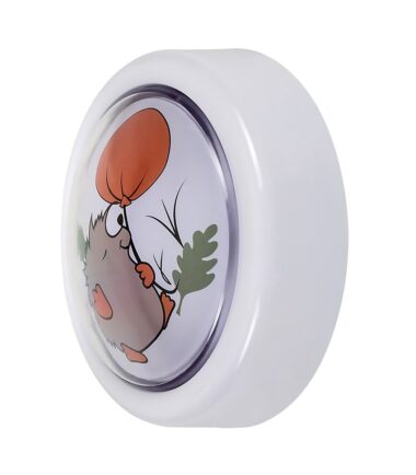 Rabalux Hedgy pushlight je model dizajniran od strane Rabaluxa. Preporučujemo ga svima koji traže jednostavno za korišćenje, a istovremeno dekorativno noćno svetlo za dečiju sobu. Lampa je okruglog oblika, u potpunosti izrađena od plastike i ukrašena motivom vilinskog ježa i balona na beloj pozadini. Poseduje ugrađeni LED izvor svetlosti sa izuzetno dugim vekom trajanja. Osvetljava hladnim belim svetlom, što olakšava snalaženje po sobi ako nešto probudi vaše dete tokom noći. Noćno svetlo se jednostavno uključuje i isključuje pritiskom na abažur, tako da nije potrebno pipkati po mraku u potrazi za prekidačem. Dečija lampa može se koristiti sa dve AA baterije. Noćno svetlo za dečiju sobu se isporučuje bez baterija.