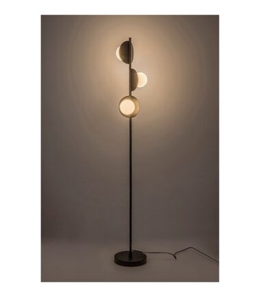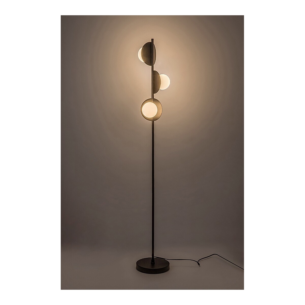 Rabalux Jules podna lampa preporučuje se onima koji vole kreativno dizajnirane, jedinstveno izgledajuće modele. Ova lampa je izrađena od metala u industrijskom stilu sa staklenim abažurima u klasičnoj crno-beloj kombinaciji boja. Sastavljena je od okruglih i sferičnih oblika: tanki krak drži tri lampe, od kojih svaka sadrži ravni okrugli element i sferični abažur. Svaka glava lampe je usmerena u drugom pravcu, tako da svetlost nije koncentrisana samo u jednom delu prostorije. Podna lampa se upravlja praktičnim nožnim prekidačem i stabilna je zahvaljujući okrugloj dekorativnoj bazi. Idealna je za dnevnu sobu ili spavaću sobu, ali se može postaviti i u trpezariju ili kuhinju. Može se koristiti sa tri sijalice, svaka sa snagom do 5 W. Tip grla je G9. Isporučuje se bez izvora svetlosti.
