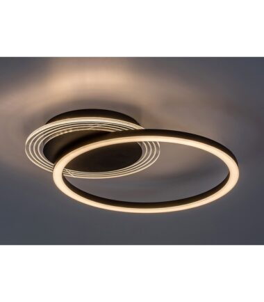 Rabalux Kerstin plafonska lampa je idealan izbor za one koji traže moderno dizajnirani, energetski efikasan model. LED lampa je izrađena od metala u stilizovanoj crnoj boji i dopunjena belim akrilnim senzorom. Postolje se sastoji od dva okrugla elementa različitih veličina: manji, diskasti element takođe služi kao dekorativna baza. Veći element je u obliku prstena. Harmoničan izgled i čist dizajn lampe čine je pogodnom za gotovo svaki moderan dom. Plafonska lampa ima ugrađeni LED izvor svetlosti koji emituje toplo belo svetlo, pružajući prijatnu, intimnu atmosferu. Preporučujemo je prvenstveno za dnevnu sobu, trpezariju ili spavaću sobu. Zahvaljujući LED tehnologiji, ovaj model se odlikuje energetski efikasnim radom i dugim vekom trajanja.
