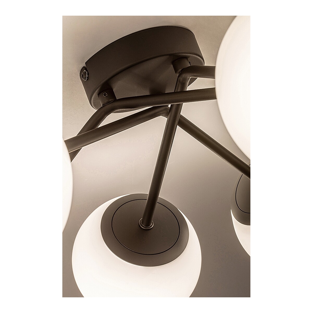 Rabaluk Meduza plafonska lampa preporučuje se ljubiteljima nordijskog stila. Nosač, izrađen u klasičnoj mat crno-beloj kombinaciji boja, izrađen je od metala, dok su njegove bele nijanse sastavljene od stakla. Šest glava sijalica postavljeno je na krajeve potpornih šipki koje se protežu od dekorativne osnove, pa se oblik ovog modela može uporediti sa oblikom meduze. Privezak za plafon je odličan izbor za dnevni boravak, trpezariju ili spavaću sobu. Šest grla E14 mogu da prime G45 izvore svetlosti, svaki sa snagom do 20 V. Lampa se može koristiti sa sijalicama koje emituju prirodnu ili toplu belu svetlost. Proizvod se isporučuje bez izvora svetlosti.