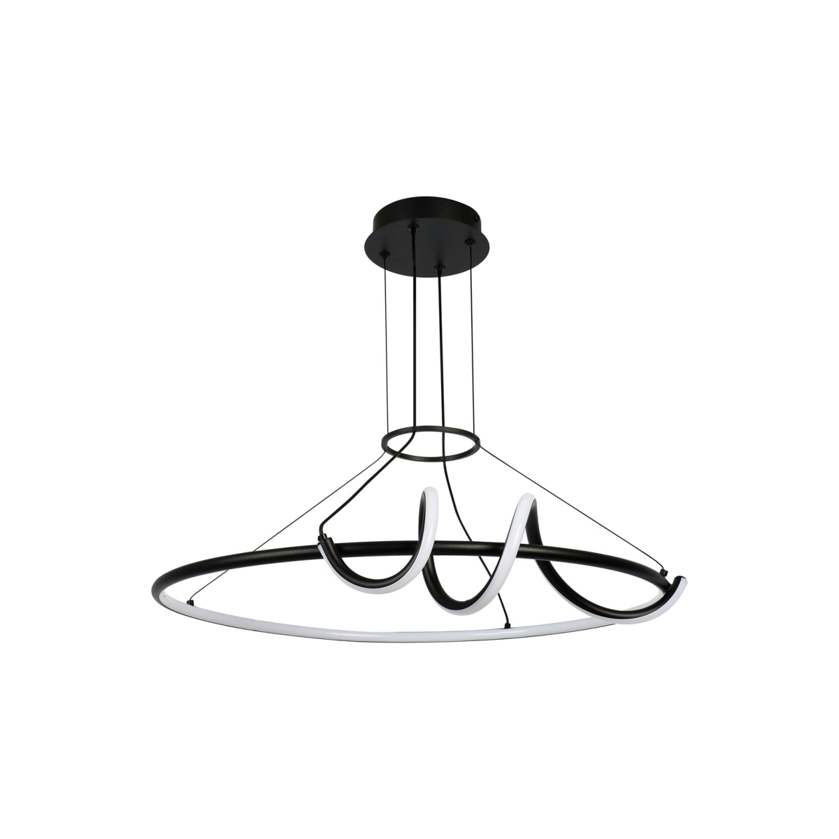 Rabalux Menazi viseća lampa je idealan izbor za one koji ne žele da žrtvuju opsežnu funkcionalnost zbog kreativnog dizajna. Ova moderna LED lampa dolazi u elegantnoj crno-beloj kombinaciji boja, sa metalnim postoljem, silikonskom senkom i malom okruglom dekorativnom bazom. Dizajn uključuje spiralu u obliku dekorativnog elementa koja se prostire duž jednog dela kružnog postolja i manji prstenasti element koji grupiše kablove za podršku. Viseća lampa ima ugrađeni LED izvor svetlosti, čija se temperatura boje može menjati pomoću daljinskog upravljača ili zidnog prekidača. Pomoću daljinskog upravljača mogu se podešavati osvetljenost, memorija, tajmer i funkcija noćnog osvetljenja. Sa izuzetnim svetlosnim intenzitetom, ova viseća lampa je savršena za osvetljavanje većih prostora. Preporučujemo je prvenstveno za dnevnu sobu, spavaću sobu ili radnu sobu.