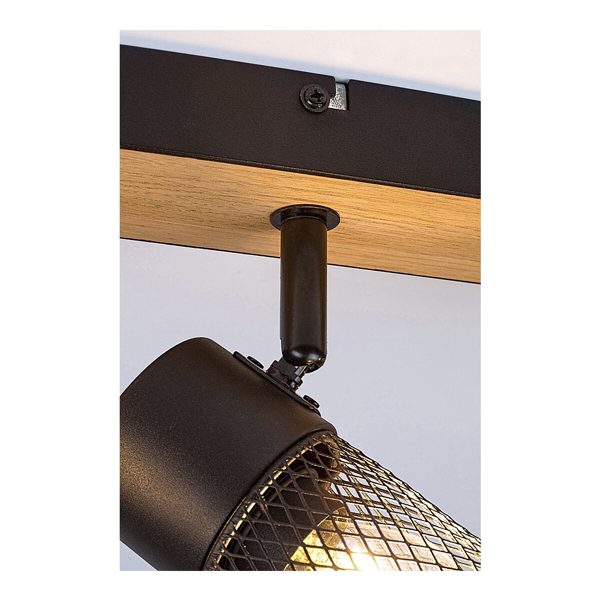 Plafonska lampa Metta sa 4 sijalice u industrijskom stilu prvenstveno se preporučuje u dnevnoj sobi ili spavaćoj sobi. Model boje hrasta koji je izrađen od metala i drveta upotpunjen je cilindričnim, crnim rešetkastim abažurima koji su otvoreni na dnu, a može se pričvrstiti za plafon uz pomoć dugačke, duguljaste dekorativne osnove. Zahvaljujući fleksibilnim glavama sijalica postavljenim jedna pored druge, svetlost lampe se može usmeravati po želji, tako da je ovaj model veoma pogodan za osvetljavanje čak i prostranije prostorije. Metta se može koristiti sa četiri sijalice, svaka snage do 40W. Tip grla je E14. U spavaćoj sobi se preporučuje da koristite ovo plafonsko svetlo sa sijalicama koje emituju toplo belo svetlo jer vam pomaže da stvorite ugodnu, intimnu atmosferu. Reflektor Metta sa 4 sijalice ima sledeće dimenzije: širina 560 mm, prečnik svakog abažura je 60 mm, rastojanje lampe od plafona je 150 mm. Ovaj model se isporučuje bez izvora svetlosti.
