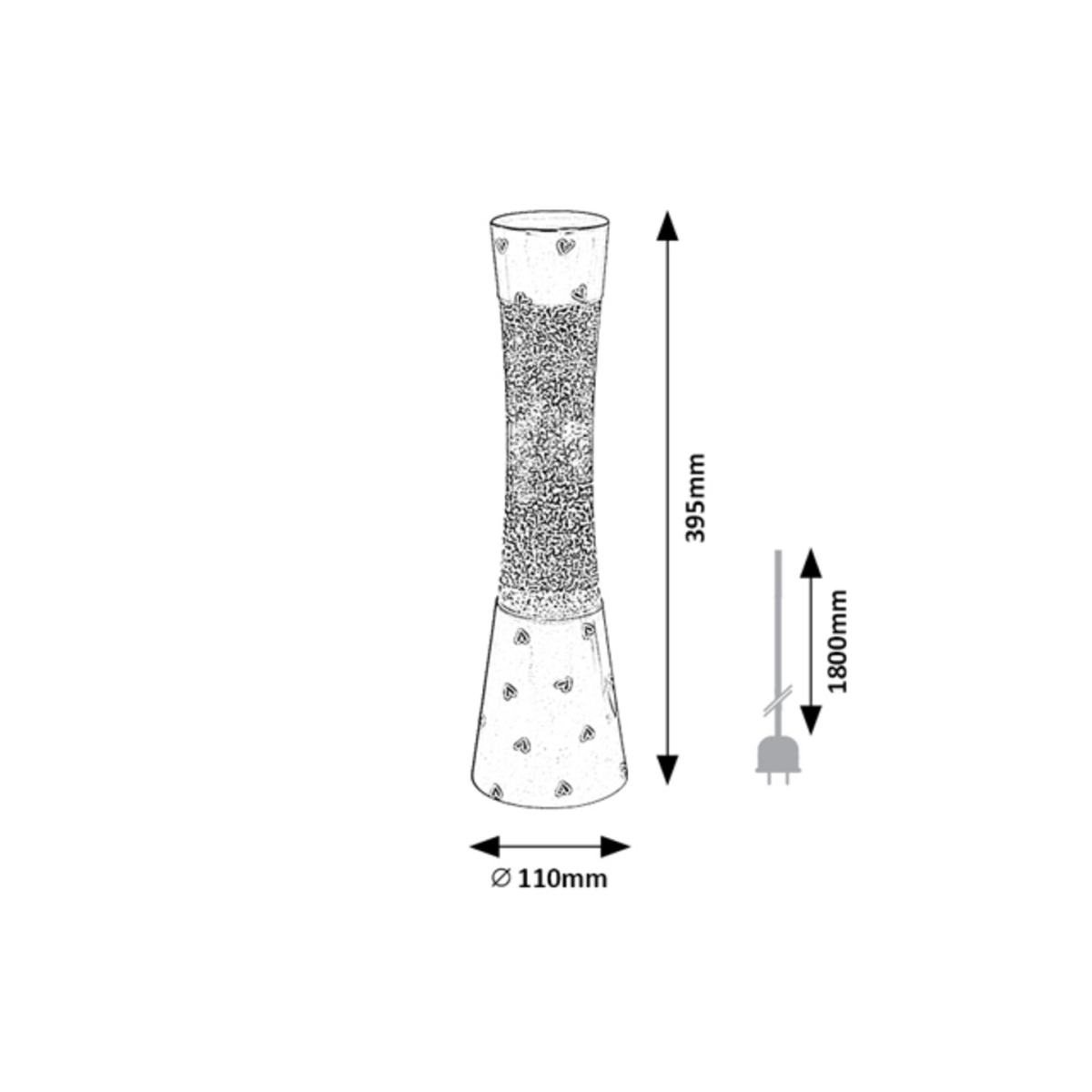Vitka dekorativna lampa Minka biće lep i veseo dodatak uređenju dnevne, spavaće ili dečije sobe. Ova lava lampa svoje divne ružičaste boje napravljena je od plastike i stakla i može se koristiti sa jednom sijalicom snage do 20W. Tip utičnice je GY6.35. Minka je model Rabalux-a, siguran za decu. Ružičaste nijanse i šara u obliku srca na lampi zajedno sa ružičastim šljokicama koji se prelijevaju unutar lampe sigurno će se dopasti čak i najmlađim damama i rado će im se diviti prije spavanja. Takođe, odrasli mogu uživati u magičnoj atmosferi koju stvara ova lava lampa u večernjim satima u dnevnoj ili spavaćoj sobi. Visina Minke je 395 mm, prečnik 110 mm. Ovaj model se isporučuje sa izvorom svetlosti i adapterom. Vreme zagrevanja lampe iznosi 3 sata, nakon čeka se postiže potpuna jačina svetla. Za pravilan rad proizvoda, rasipanje toplote sijalice je od suštinskog značaja, tako da ne preporučujemo korišćenje LED sijalice za to.
