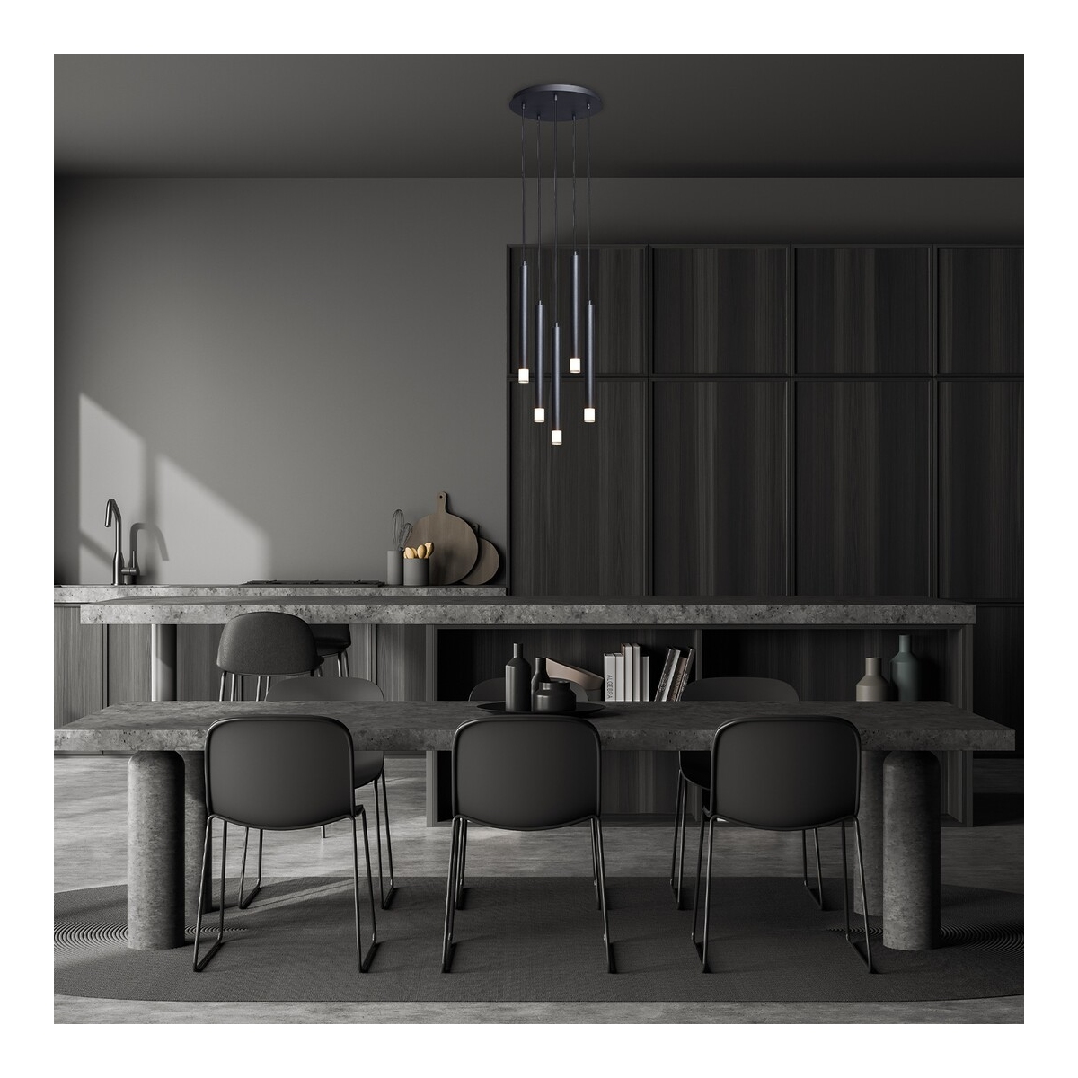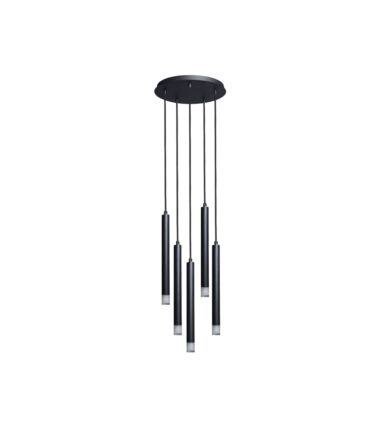 Rabalux Ramira 5-sijalica viseća lampa se preporučuje onima koji traže minimalističku viseću lampu koja se može integrisati u skoro svaku prostoriju njihovog modernog doma. Lampa je izrađena od metala u crnoj boji sa prozirnim akrilnim senkama i velikom okruglom dekorativnom bazom. Lampe imaju tubularni, cilindrični oblik i vise na različitim visinama, što ovoj visećoj lampi daje uzbudljiv izgled. Ovaj model je idealan izbor za dnevnu sobu, kuhinju, trpezariju ili spavaću sobu. Možete je instalirati iznad trpezarijskog stola ili neposredno iznad kreveta. Viseća lampa može se koristiti sa pet sijalica, svaka snage do 5 W. Tip grla je G9. Možete odabrati izvore svetlosti koji emituju toplo ili prirodno belo svetlo. Lampa se isporučuje bez izvora svetlosti.