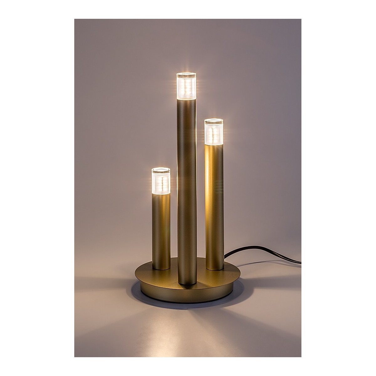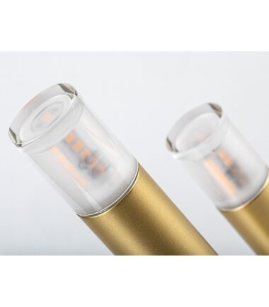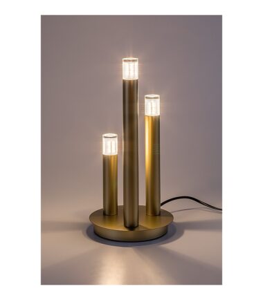 Rabalux Ramira stona lampa je idealan izbor za one koji preferiraju jedinstveni dizajn i univerzalne, lako prenosive modele. Lampa je izrađena od metala u elegantnoj zlatnoj boji, sa providnim akrilnim abažurima na vrhu glava lampi. Dekorativna baza je okruglog oblika, sa tri cilindrična elementa lampe različitih visina, koji podsećaju na sveće. Dizajnerska stona lampa može se postaviti u različite prostorije vašeg modernog doma: može biti stilski dodatak dnevnoj sobi, kuhinji, trpezariji ili spavaćoj sobi. Upravlja se kablovskim prekidačem i može se koristiti sa tri izvora svetlosti, svaki sa snagom do 5 W. Tip grla je G9. Možete odabrati sijalice koje emituju toplo ili prirodno belo svetlo. Isporučuje se bez izvora svetlosti.