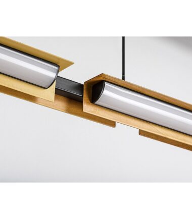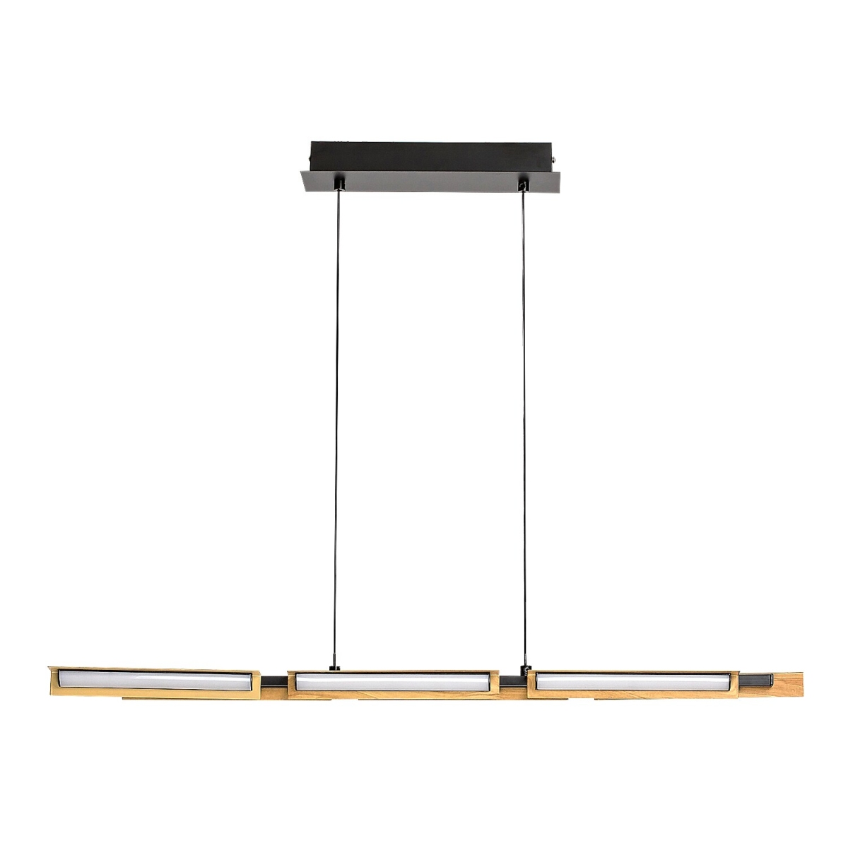 Sa svojim toplim nijansama, Remiel privezak je posebno dobar izbor u modernim kuhinjama gde nameštaj sadrži druge drvene elemente ili elemente sa efektom drveta. Remielovo svetlo pruža efikasnu pomoć tokom pripreme, kuvanja i serviranja obroka. Duga kvadratna šipka mat crne metalne lampe dopunjena je delovima sa efektom drveta i belim plastičnim abažurom. Privezak se može pričvrstiti na plafon uz pomoć duguljaste dekorativne podloge koja je sa fiksiranjem povezana preko dva kabla. Remiel ima ugrađeni LED izvor svetlosti energetske klase G sa snagom od 30W, svetlosnim fluksom od 1.570 lumena sa senkom i 2.400 lumena bez senke, i životnim vekom od 30.000 sati. Sa temperaturom boje od 3000 K, sijalica emituje toplu belu svetlost i stvara prijatnu atmosferu u kuhinji. Privezak ima sledeće dimenzije: širina 790 mm, visina 65 mm, rastojanje od plafona 1.200 mm, dubina ugradnje 280 mm.
