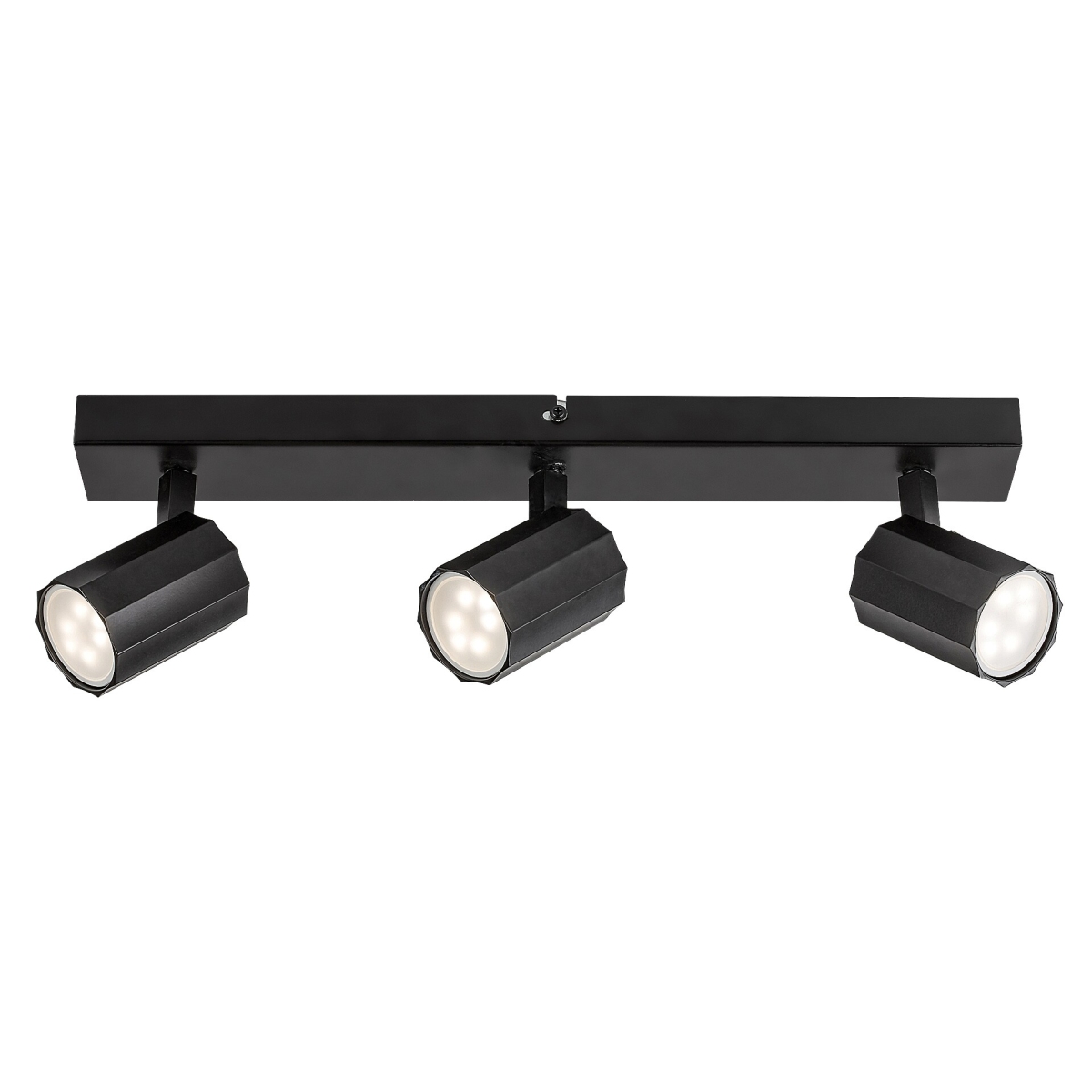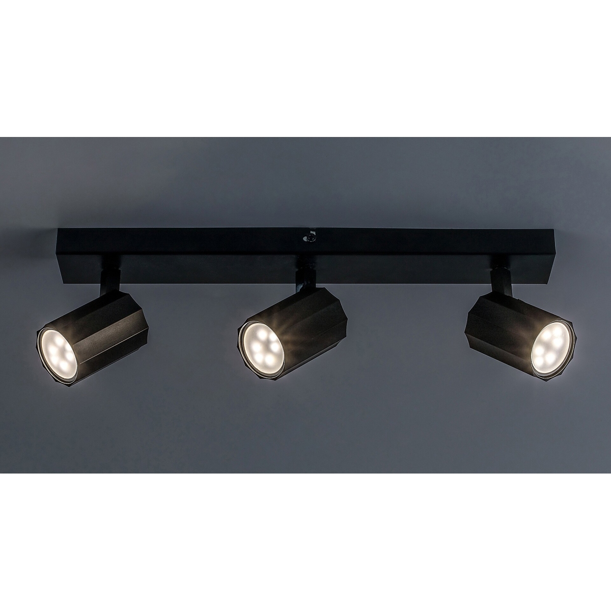 Moderna Rogelio plafonska lampa sa 3 sijalice može biti praktičan izbor u dnevnoj sobi, spavaćoj ili radnoj sobi. Mat crni metalni element upotpunjen je cilindričnim aluminijumskim abažurima iste boje, a lampa se može pričvrstiti na plafon uz pomoć dugačkog pravougaonog ukrasnog postolja. Zahvaljujući fleksibilnim glavama lampe, svetlost lampe može da se usmerava po želji, čime se omogućava efikasno osvetljenje prostorije. Rogelio se može koristiti sa tri sijalice, svaka snage do 5 V. Tip grla je GU10. Ukoliko želite da lampu postavite u dnevnu ili radnu sobu, preporučljivo je da je koristite sa sijalicama koje emituju prirodnu belu svetlost jer vam to pomaže da postignete moderan, čist efekat i doprinosi efikasnom radu. Dimenzije plafonske svetiljke Rogelio sa 3 sijalice su sledeće: širina 430 mm, prečnik svakog abažura 50 mm, rastojanje lampe od plafona 125 mm. Ovaj model se isporučuje bez izvora svetlosti.