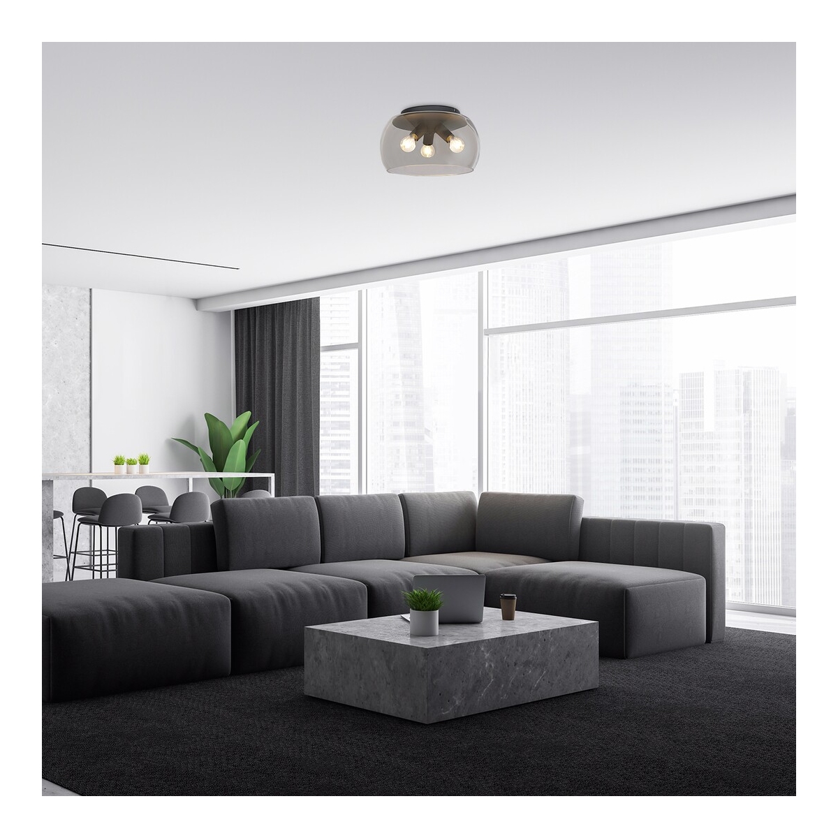 Predstavljajući moderan stil, plafonjera URSULA se prvenstveno preporučuje u vašoj dnevnoj sobi ili trpezariji. Crna mat metalna lampa dopunjena je okruglim abažurom od providnog stakla. URSULA može da se koristi sa tri sijalice, svaka snage do 40W. Tip grla je E27. U zavisnosti od vaših zelja, možete odabrati izvore svetlosti koji zrače toplo ili prirodno belo svetlo za ovu lampu. Zahvaljujući glavama lampi koje gledaju u različitim pravcima, možete efikasno osvetliti prostoriju. Dimenzije plafonjere su sledeće: prečnik 400 mm, rastojanje od plafona 240 mm, prečnik ugradnje 240 mm. Ovaj model se isporučuje bez izvora svetlosti.