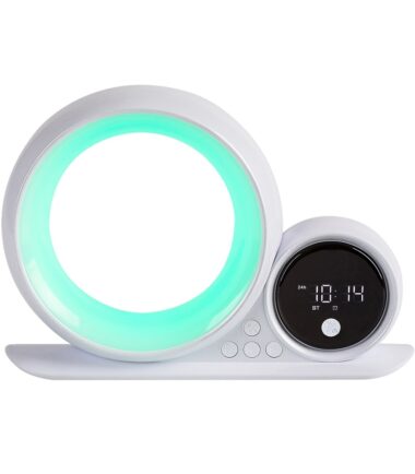 Rabalux Wakeway stona lampa preporučuje se onima koji traže dekorativnu dopunsku lampu koja objedinjuje više funkcija. Suština ovog modela su dva okrugla elementa lampe različitih veličina, koje drži izdužena ravna dekorativna baza. Manji element je opremljen displejom koji prikazuje vreme i ugrađenim Bluetooth zvučnikom, dok veći element služi kao lampa. Stona lampa emituje svetlost iz unutrašnje polovine prstenastog postolja. Ovaj model je sposoban za RGB osvetljenje, nudeći izuzetno prijatno, višebojno osvetljenje. Dizajnerska lampa je savršen izbor za dnevnu sobu, spavaću sobu ili radnu sobu. Dolazi sa kablom i ugrađenim LED izvorom svetlosti koji garantuje dug vek trajanja.