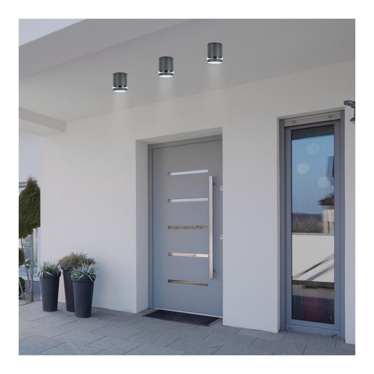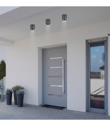 Spoljne plafonske svetiljke Zombor modernog stila, cilindrične, izrađene su od aluminijuma u antracit sivoj boji. Posebnost dizajna je u tome što je poklopac tamne boje razbijen tankom trakom providnog plastičnog abažura. Ovaj downlighter je odličan izbor za osvetljavanje vaše terase. Zombor se može koristiti sa jednom sijalicom snage do 35W. Tip utičnice je GU10. Za stvaranje prijatne, intimne atmosfere preporučujemo da ga koristite sa sijalicom koja emituje toplu belu svetlost. Prečnik ove spoljne plafonske svetiljke je 102 mm, a udaljenost od plafona je 120 mm. Možete ga smelo instalirati na mestima koja su manje zaštićena od kiše i prašine jer ima IP54 zaštitu koja obezbeđuje da je zaštićen od prašine i prskanja vode sa svih strana. Ova lampa se isporučuje bez izvora svetlosti.