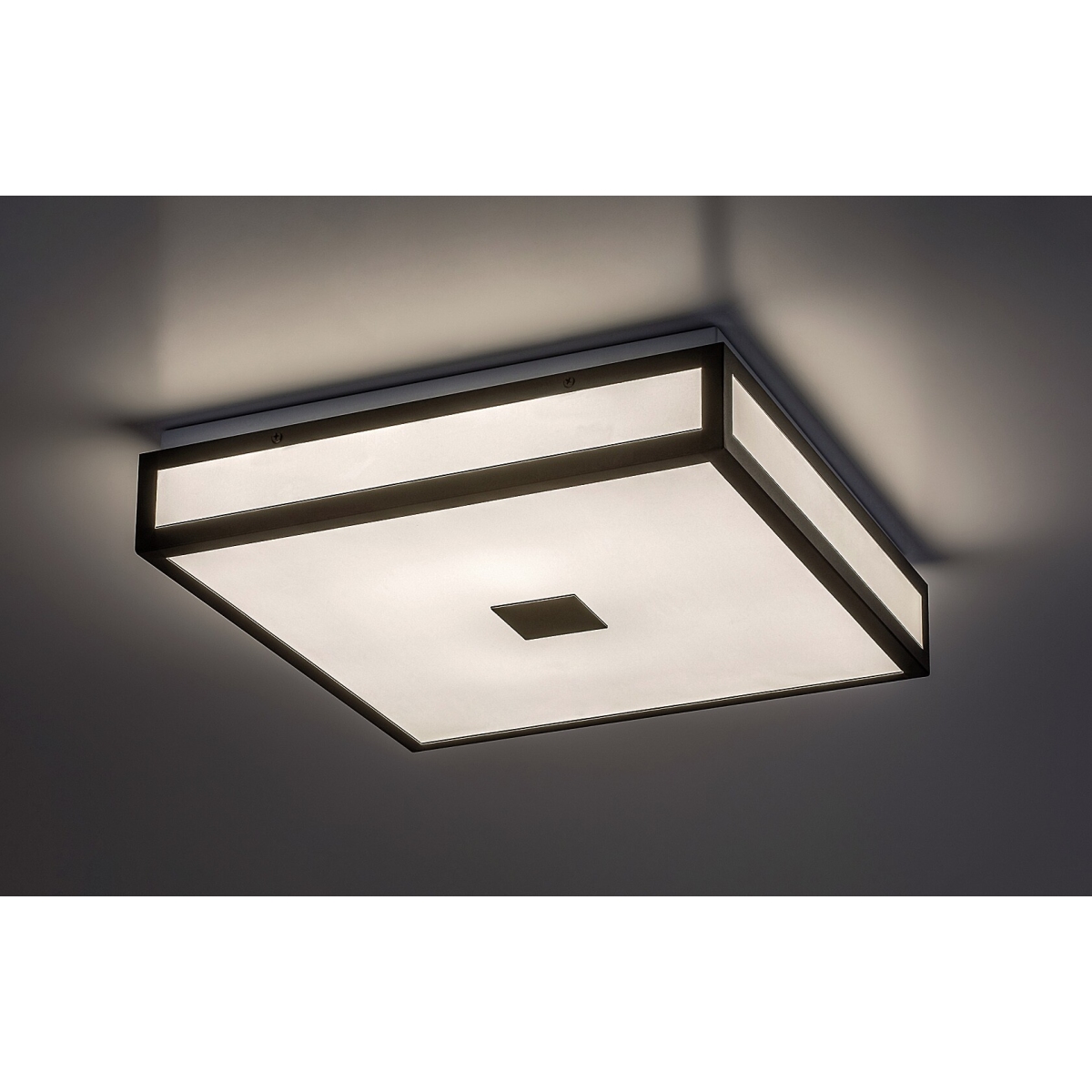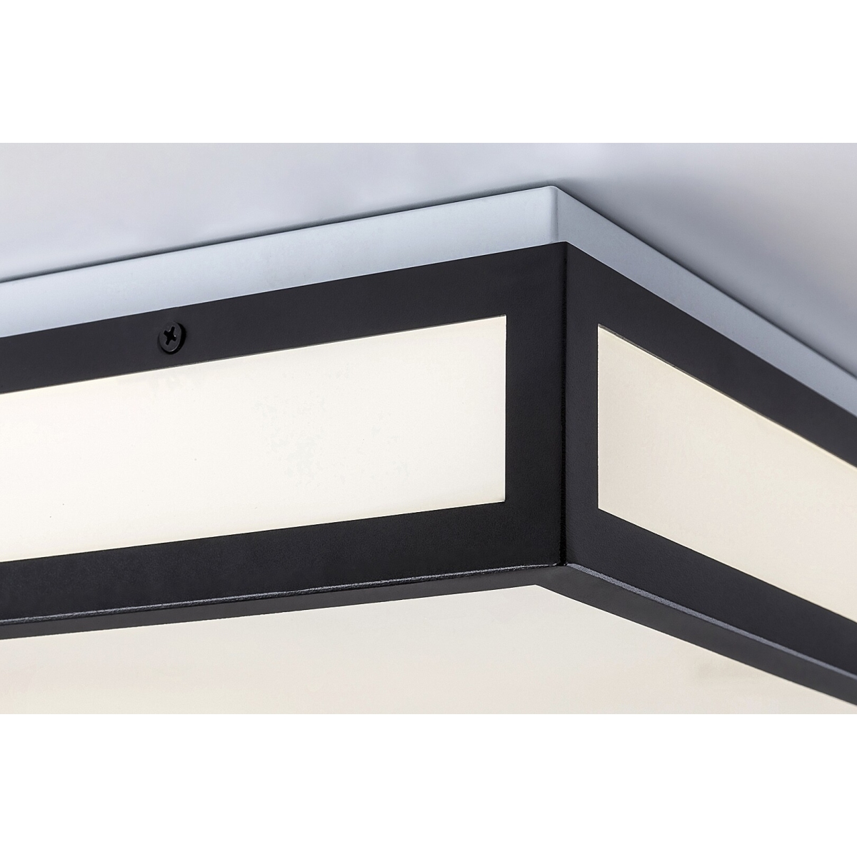 Plafonska lampa za kupatilo Zoia u retro stilu nudi praktično rešenje koje štedi prostor za osvetljavanje vašeg kupatila. Model kvadratnog oblika crne boje izrađen je od metala i upotpunjen je belim staklenim abažurom. Zbog svog čistog dizajna i crno-bele boje Zoia se diskretno uklapa u opremanje kupatila. Plafonska lampa ima ugrađen LED izvor svetlosti energetske klase G snage 24 V, svetlosnog toka od 1.700 lumena sa senkom i 2.270 lumena bez senke. Temperatura boje izvora svetlosti je 4.000 K i ima izuzetan životni vek: služi vam 30.000 sati. Zoia zrači prirodno belo svetlo koje vam pomaže da postignete moderan, čist efekat u kupatilu. IP44 zaštita lampe obezbeđuje da je zaštićena od prodora čvrstih čestica prečnika od 1 mm ili više i od prskanja vode iz bilo kog smera. Dimenzije svetla za kupatilo su 400k400 mm, rastojanje od plafona je 90 mm.
