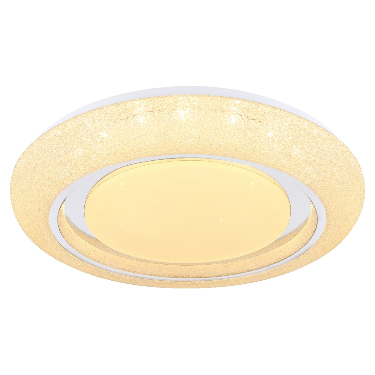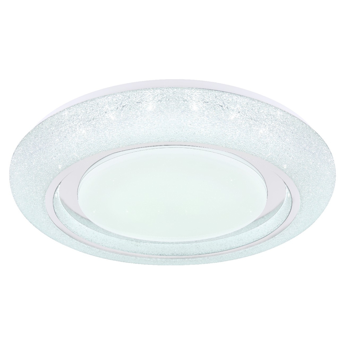 Ova okrugla plafonska lampa napravljena je od belog metala, akrilni abažur u opalu, hromiranog prstena i unosi modernu eleganciju u vaš dom kroz svoj svetlucavi dizajn. Lampa ima prečnik od 48 cm, visoka je 7 cm i ima mnogo tehničkih funkcija. Uključeni izvor LED svetla donosi 1698 lumena jako svetlo u vaše sobe, kao što su hodnici, dnevna soba, trpezarija i sa obezbeđenim daljinskim upravljačem možete prigušiti plafonsko svetlo i prilagoditi i boju svetla između 3000 Kelvina (toplo bela) i 6000 Kelvina (dnevna bela). Funkcija memorije čuva vaša podešavanja, a noćno svetlo čini lampu pogodnom i za spavaće sobe i dečije sobe. Svetlo na plafonu je takođe kompatibilno sa Smart Home i Alexa. Lampa kombinuje tehničke sa dekorativnim funkcijama i tako postaje odličan, dnevni pratilac.