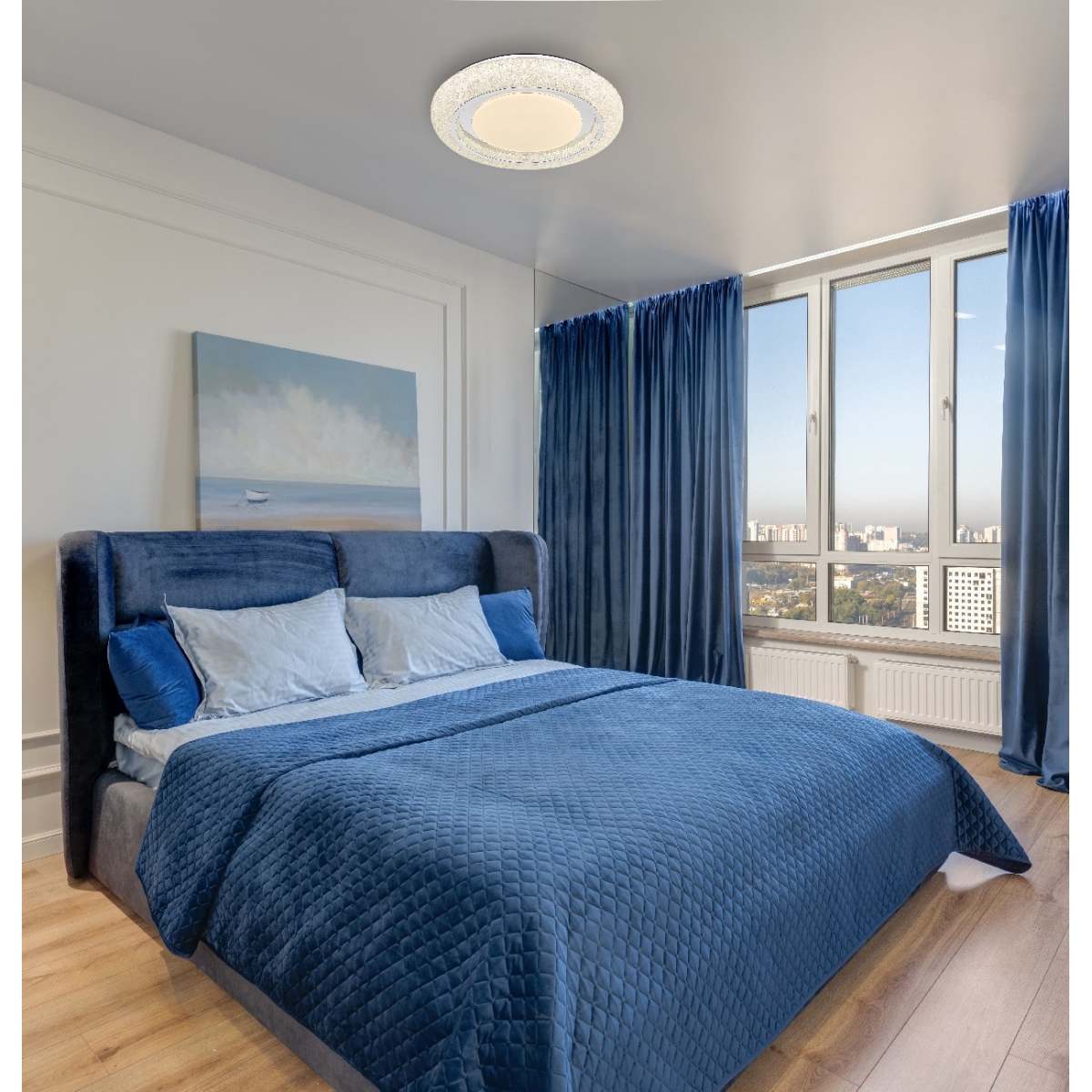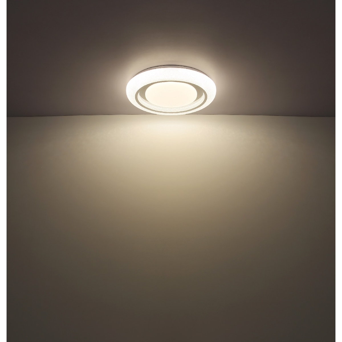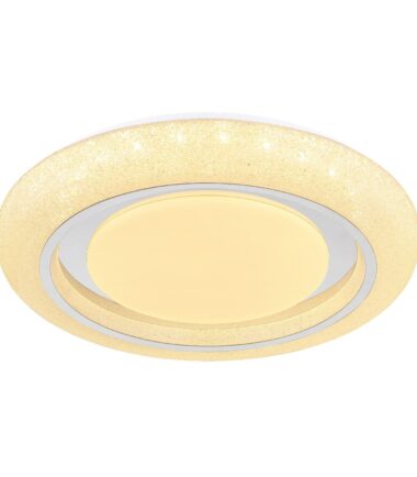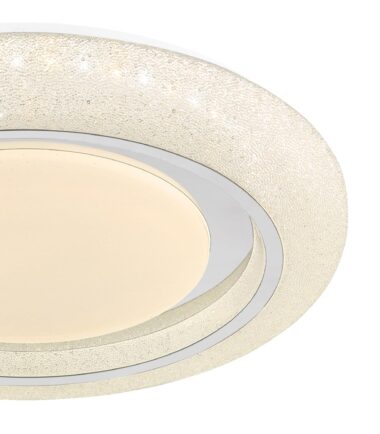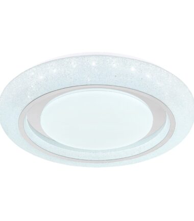 Ova sjajna plafonska lampa serije RADA ubeđuje sjajnom šemom boja. Okrugla plafonska lampa (Ø49cm) sa integrisanim LED panelima može se fiksirati u rasponu od 2700 Kelvina toplo bela, 4200 Kelvina neutralna i 6500 Kelvina hladno bela. Vrhunac je efekat blistavog sjaja koji oduzima dah, a lampa takođe ima funkciju memorije.