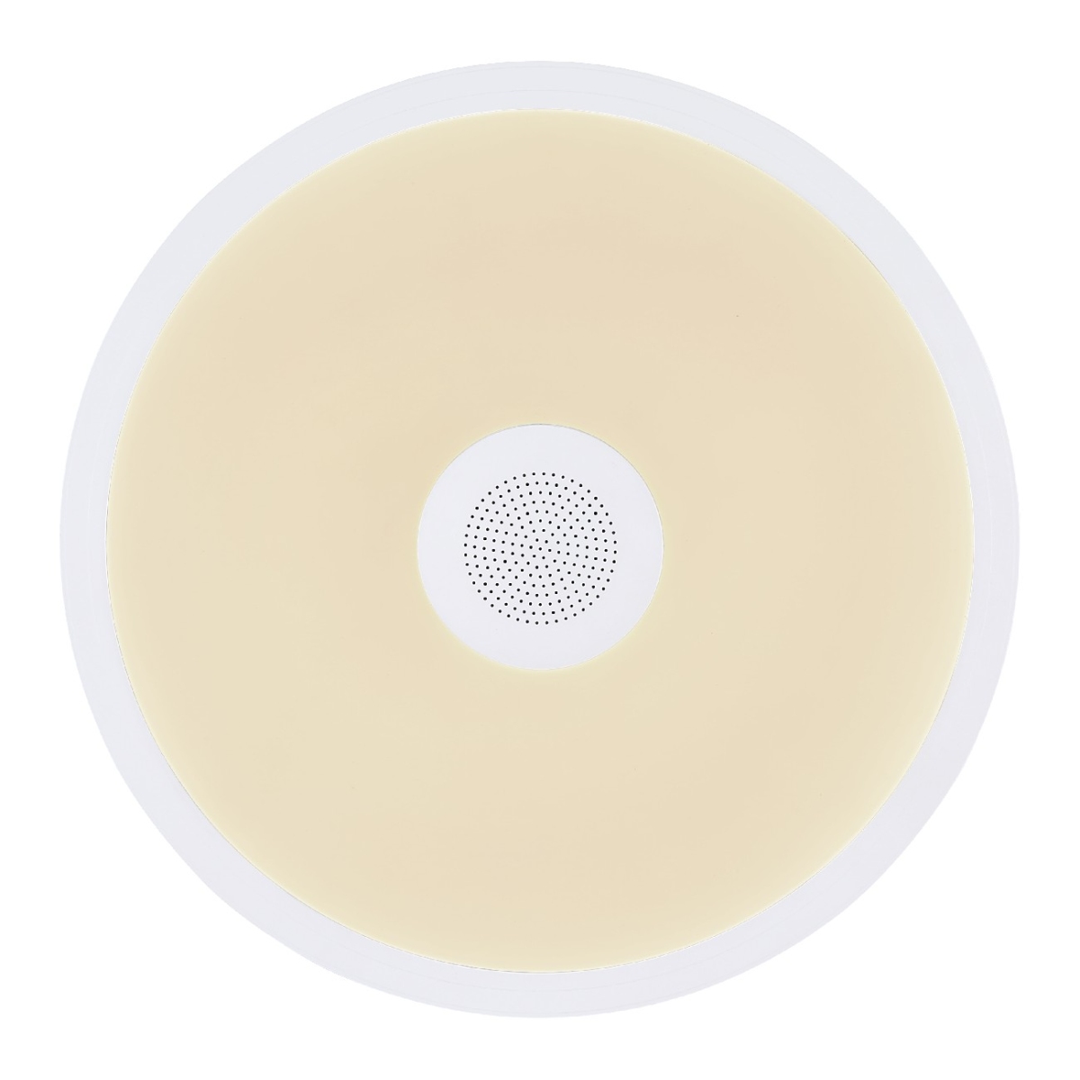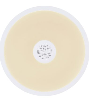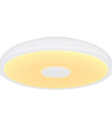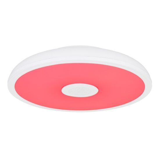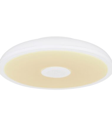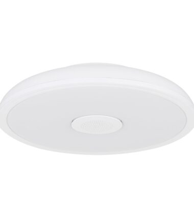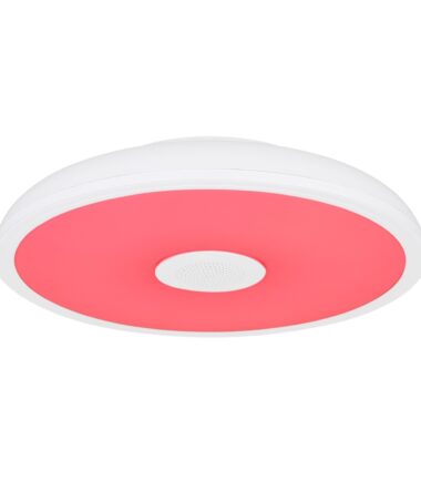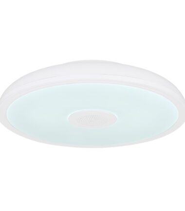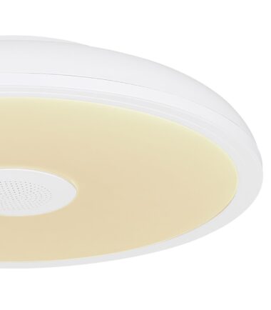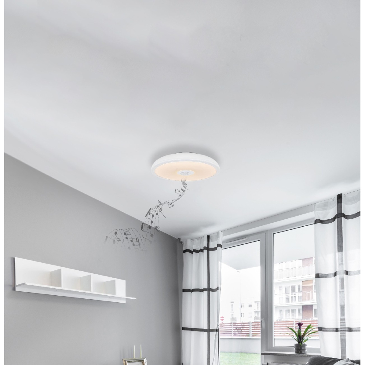 Ova okrugla plafonska lampa serije RAFFY (ø 28 cm) je divan dodatak vašem enterijeru. Plafonska lampa napravljena od bele plastike sastoji se od opalnog plastičnog prstena koji ogrđuje integrisani 3W Bluetooth zvučnik i pokriva uključene LED diode, obezbeđuje 1000 lumena svetlosti. Uz pomoć obezbeđenog daljinskog upravljača, možete ne samo da prigušite svetlo na plafonu, već i da podesite boju svetla pojedinačno u nekoliko koraka između 2700 Kelvina (topla bela) i 6500 Kelvin (hladno bela) i takođe imate kontrolu jačine zvuka. Pored toga, možete dozvoliti da plafonska lampa zablista u RGB bojama i ima opciju noćnog svetla. Kroz nekoliko artikala iste serije možete upotpuniti celokupnu sliku u svoja četiri zida i obezbediti elegantan ambijent.