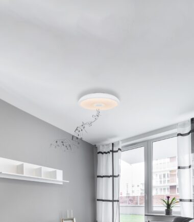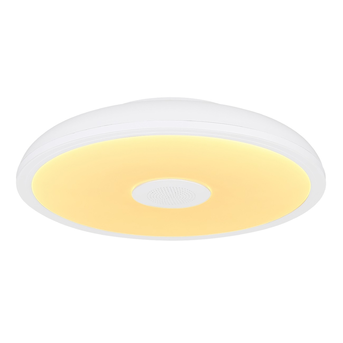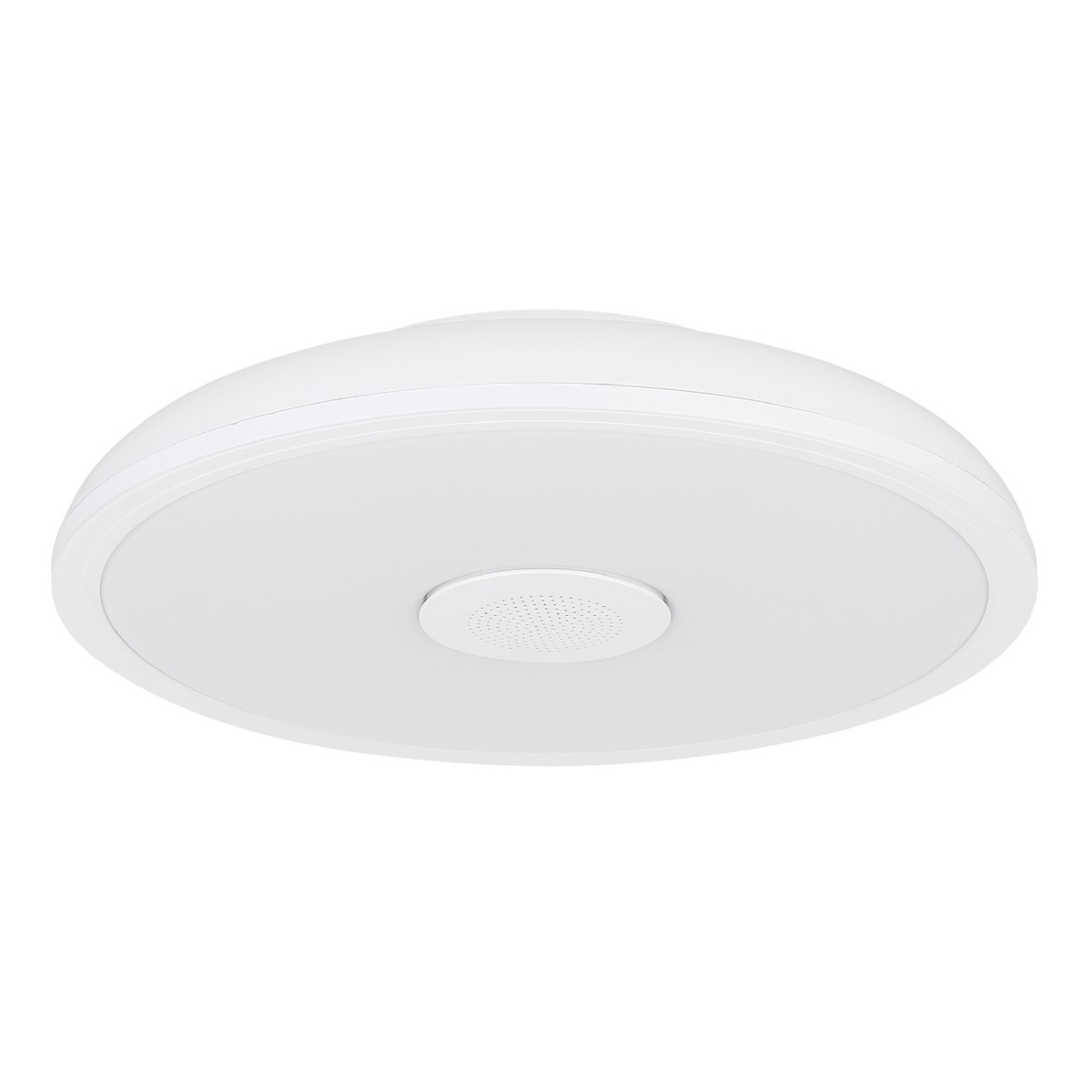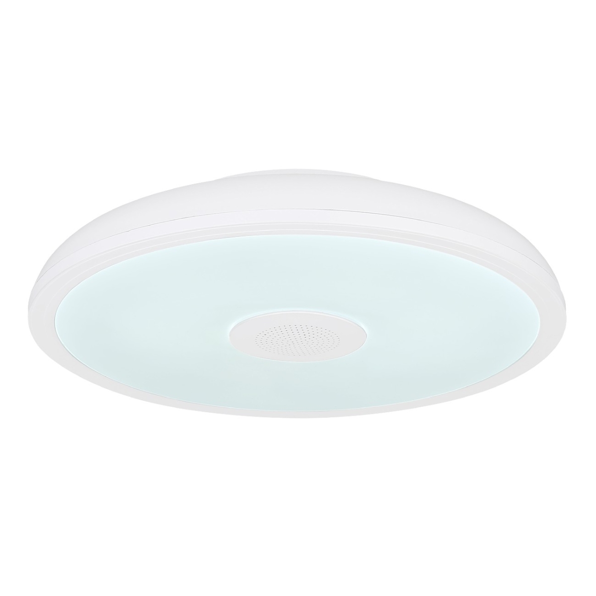 Ova okrugla plafonska lampa serije RAFFY (ø 28 cm) je divan dodatak vašem enterijeru. Plafonska lampa napravljena od bele plastike sastoji se od opalnog plastičnog prstena koji ogrđuje integrisani 3W Bluetooth zvučnik i pokriva uključene LED diode, obezbeđuje 1000 lumena svetlosti. Uz pomoć obezbeđenog daljinskog upravljača, možete ne samo da prigušite svetlo na plafonu, već i da podesite boju svetla pojedinačno u nekoliko koraka između 2700 Kelvina (topla bela) i 6500 Kelvin (hladno bela) i takođe imate kontrolu jačine zvuka. Pored toga, možete dozvoliti da plafonska lampa zablista u RGB bojama i ima opciju noćnog svetla. Kroz nekoliko artikala iste serije možete upotpuniti celokupnu sliku u svoja četiri zida i obezbediti elegantan ambijent.