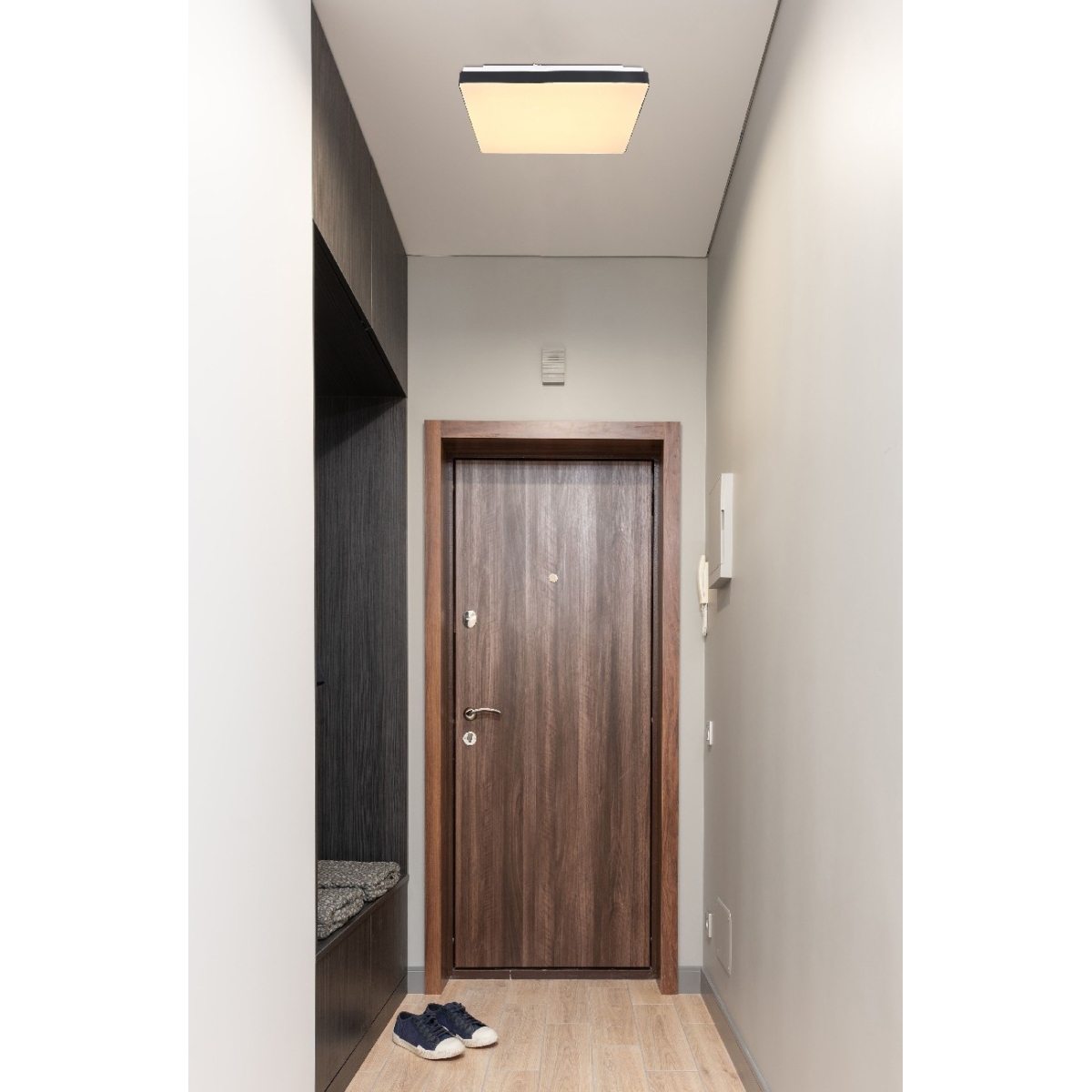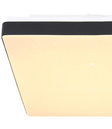 Ova plafonska lampa iz serije RAINA (33×33 cm) je divan dodatak vašem enterijeru. Sastoji se od crnog mat plastičnog rama, koji je obezbeđen opalnom plastičnom pločom sa prelepim sparkle dekorom. Ovim su obuhvaćene uključene LED sijalice, koje obezbeđuju 856 lumena jake svetlosti prijatnom svetlom bojom od 3000 Kelvina (topla bela). Sa Ostalim modelima iste serije možete upotpuniti celokupnu sliku u svom domu.