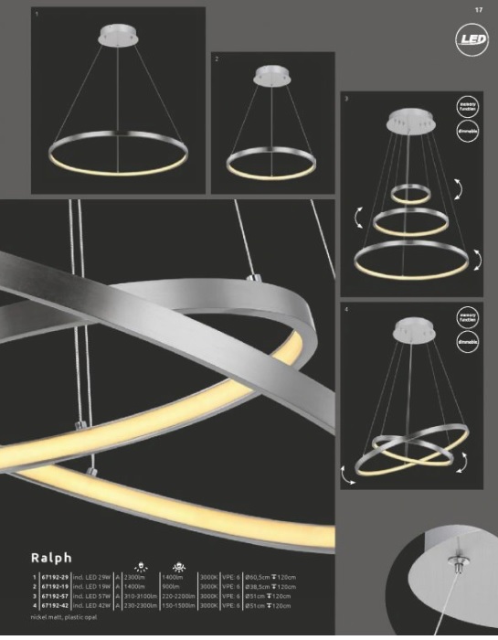 Ova moderna, okrugla LED visilica serije RALPH (Ø 51cm) u mat crnoj boji, garantovano će biti detalj koji će privlačiti poglede. Dizajnirana od dva prstena, ova unutrašnja lampa se proteže 120 cm u prostoriju. Uključena LED sijalica od 57 vati obezbeđuje 2200 lumena jako svetlo. Intenzitet svetlosti (3000K) možete sami odrediti i zatamniti preko zidnog prekidača. LED unutrašnje svetlo je idealno za upotrebu u bilo kojoj spavaćoj, dečijoj, dnevnoj sobi, trpezariji ili hodniku. Uz ostale modele ove serije, možete ulepšati dom. Zahvaljujući niskoj potrošnji energije, ova LED lampa štedi energiju i samim tim je i veoma ekološki prihvatljiva.
