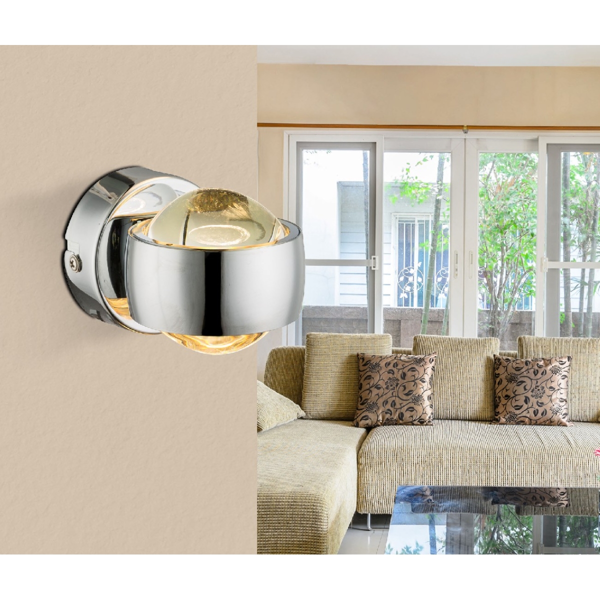 Iz RANDI serije dolazi ova mala, ali fina zidna lampa, za čiju je osnovu izabrana boja u hroma. Providno staklo služi za pokrivanje sijalica, pri čemu se postiže elegantan izgled. Snaga dva LED-a, svaki od 3 vati, osigurava pravu jačinu, svetli intenzitet ove unutrašnje lampe je optimalnih 210 lumena i svetlosna boja se doživljava kao prijatna toplo bela zbog 3000K. Ovaj model je dostupan i u drugim bojama.